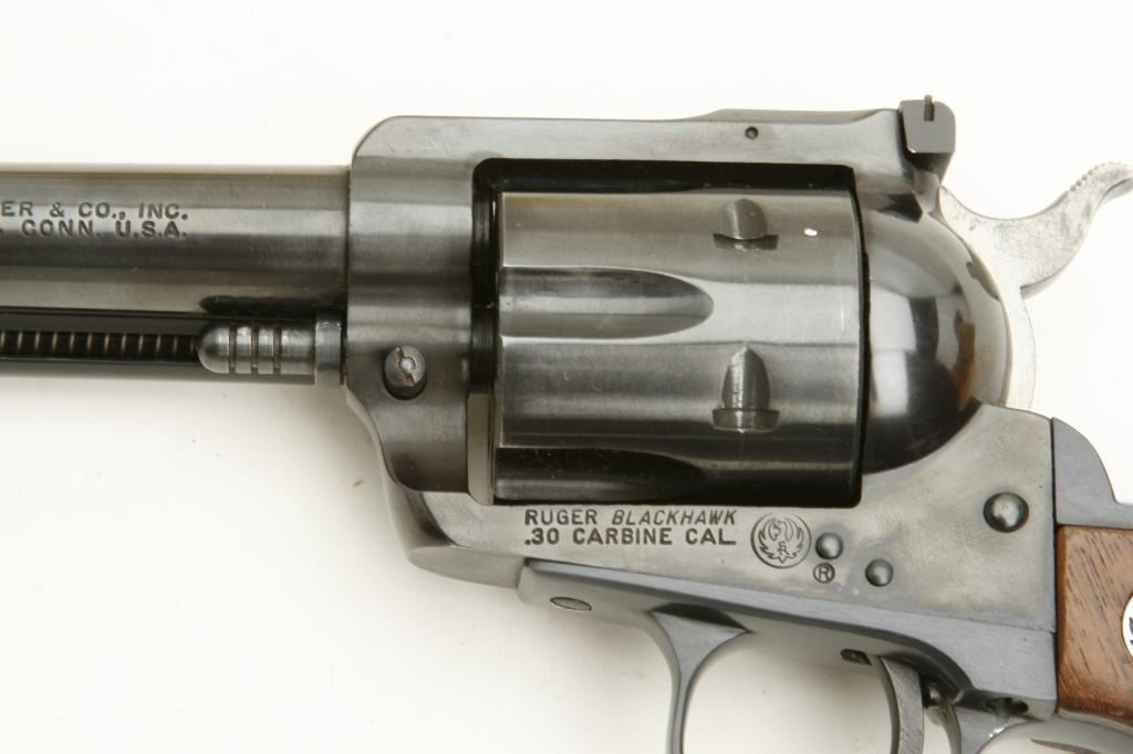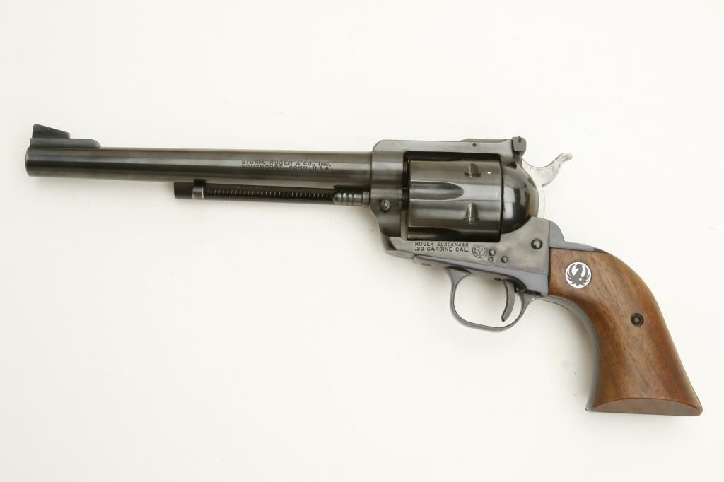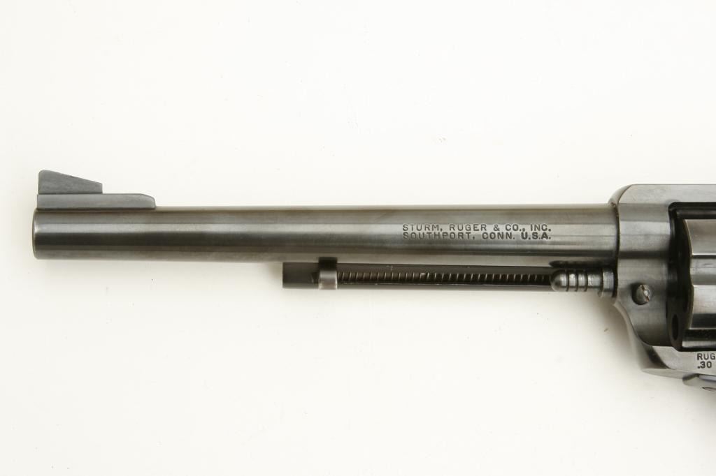 revolver, .30 carbine caliber, 7.5” barrel, blued finish, wood medallion grips, S/N 50-04311, in excellent condition showing slight high point wear and little use. (Modern/PPT). Est.: $400-$800.