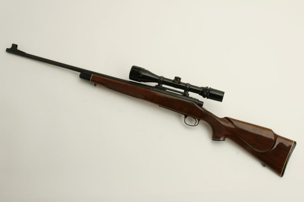 caliber, 24” round barrel, blued finish, checkered wood stocks, S/N C6531532, in overall fine condition with fine bore, action, markings and wood stock; mounted with a Bausch & Lomb Scopechief scope displaying fine optics. (Modern). Est.: $400-$800.