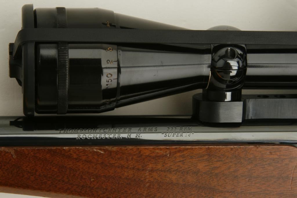 .222 Rem caliber, 14” barrel mounted with a 7X Burris scope, blued finish, wood forend and grips, S/N 401542, in overall fine condition displaying the majority of its original blued finish, fine bore, crisp action, sharp markings and very good to fine wood that shows some scattered storage mars to the forend. Accompanied by a factory padded soft carry case. (Modern/PPT). Est.: $400-$800.