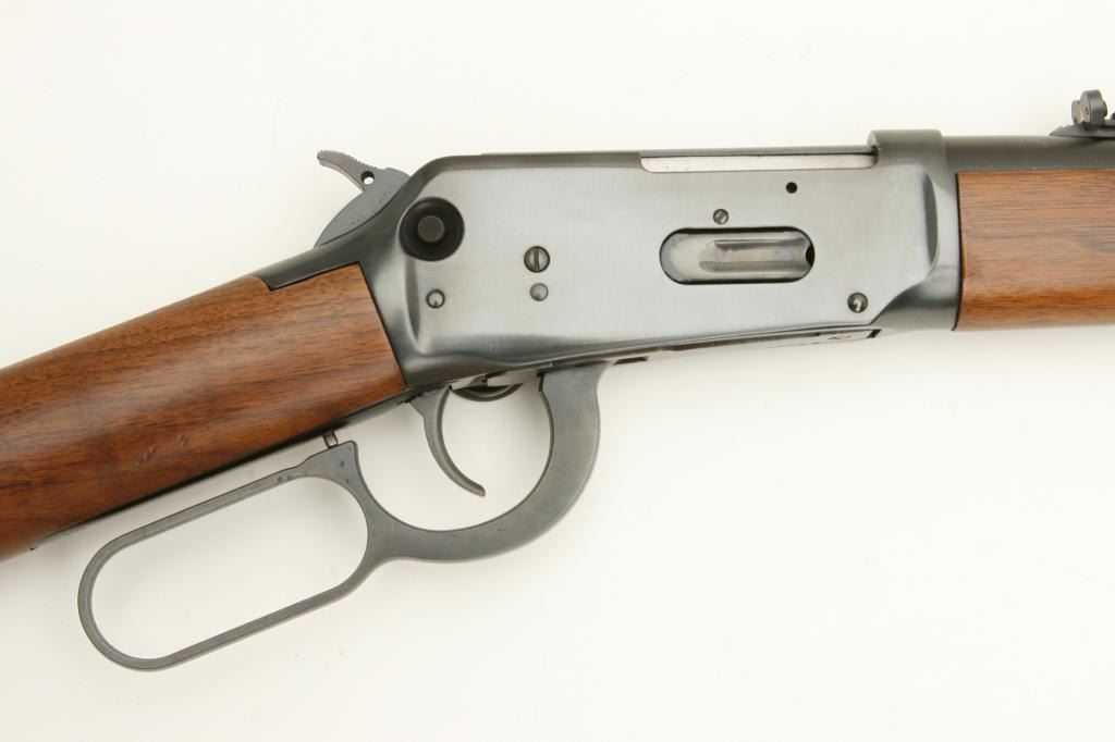 caliber, serial #6235119. The carbine is in nearly new condition showing only slight handling marks. It features a 16” round barrel, saddle ring and full length magazine tube. The smooth wood stocks are in excellent condition with a Winchester marked, checkered plastic butt plate. The bore is excellent, the action crisp and markings are sharp. (Modern) Est.: $350-$700.
