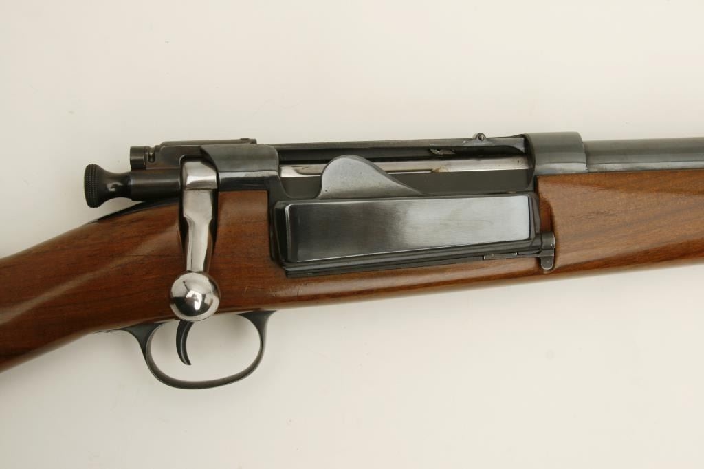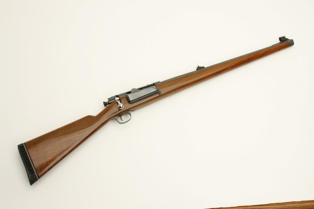 customized with Mannlicher wood stock, reblued finish, S/N 154303, in overall very good condition as refurbished; good bore, crisp action, good markings, very good wood stock with Pachmayr hard rubber butt pad. (C&R). Est.: $250-$500.