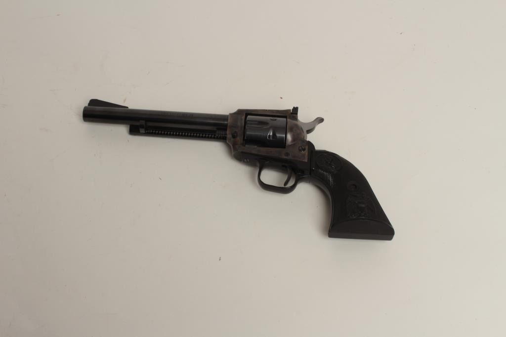 6” barrel, blued and case hardened finish, checkered eagle plastic grips, S/N G215407, in near new condition. (Modern/PPT). Est.: $250-$500.