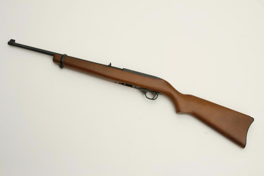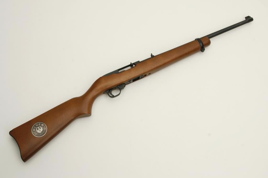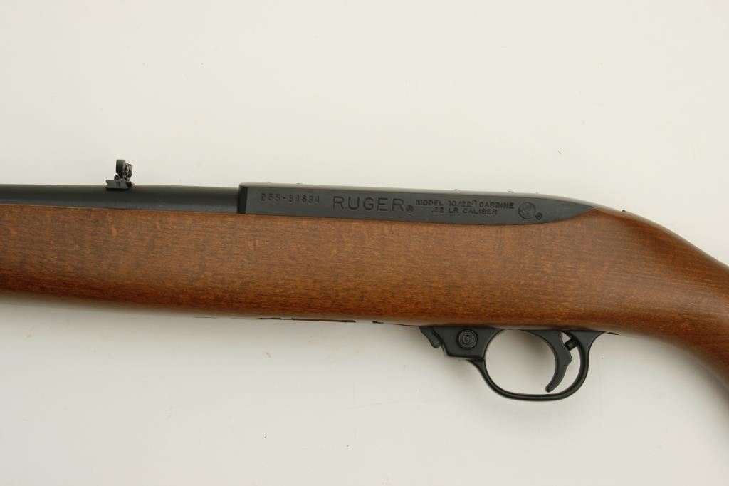 LR caliber, serial #255-84634. The carbine is in nearly new condition showing only handling marks. The barrel and receiver retain nearly all of their blued finish. The smooth wood stock is in excellent condition, with a smooth, plastic crescent butt plate and Ruger commemorative medallion inletted into the right side of the butt stock. The bore is excellent, the action crisp and markings are sharp on this lightly used commemorative carbine. The lot includes one correct magazine. (Modern) Est.: $150-$300.
