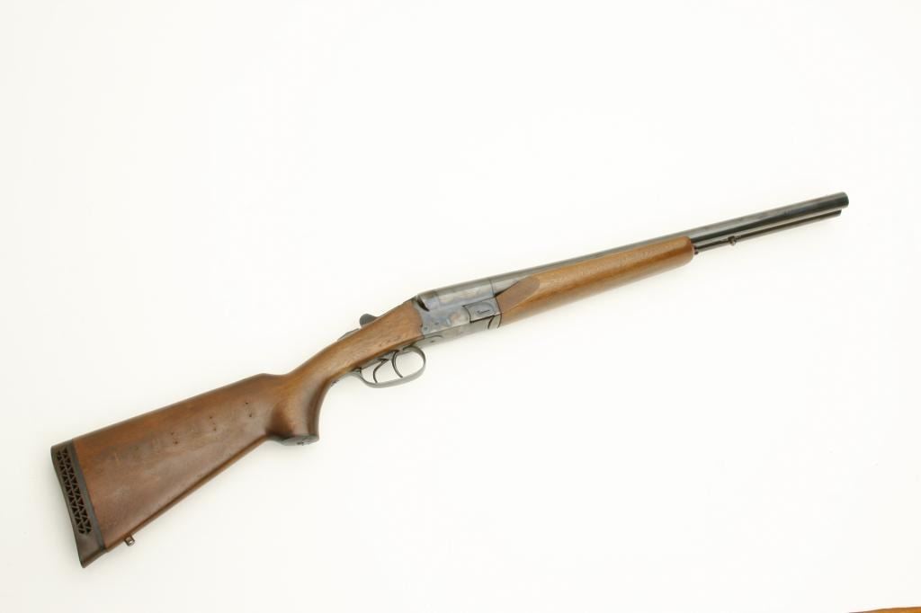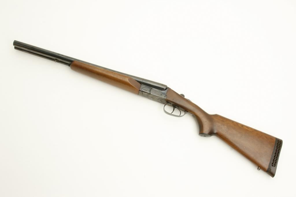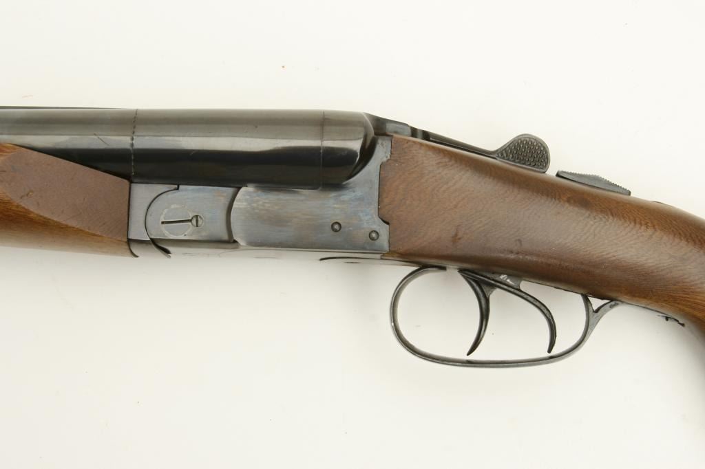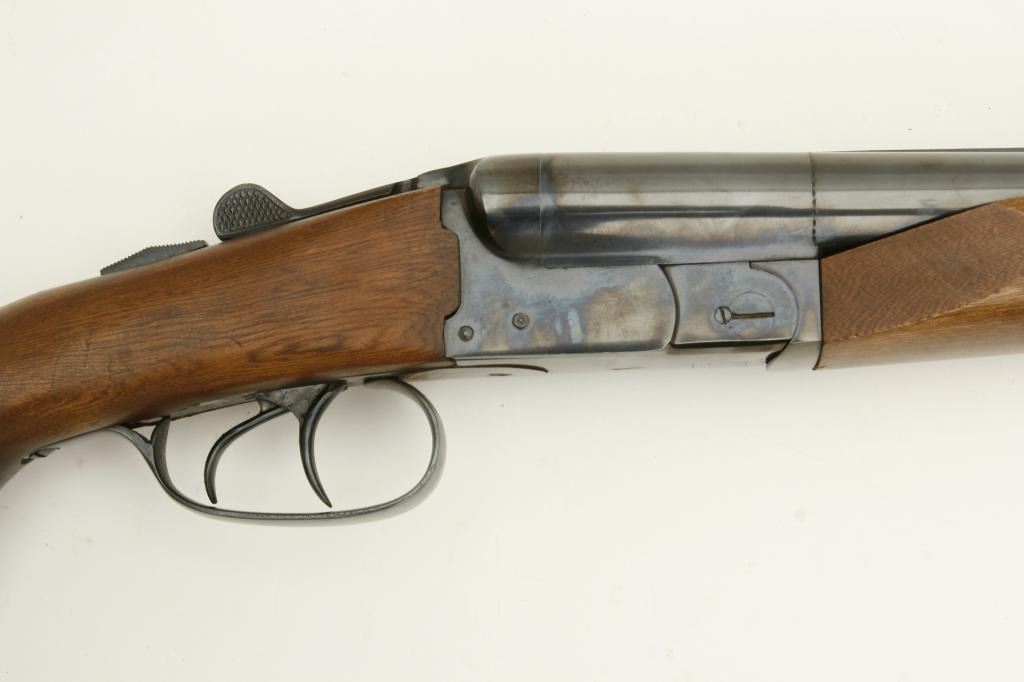 serial #R69589. The shotgun is in very good overall condition with 20 ¼” barrels, full-length filed rib and a brass bead front sight. The barrels have been ported and retain nearly all of their blued finish as does the receiver. The shotgun features double triggers. The smooth wood stocks are in good condition with small mars and a number of small holes on the right side of the butt stock where tacks were removed. The butt stock ends with a ventilated rubber pad and a 14 ½” LOP. The bores are good, the action crisp and markings are sharp. (Modern) $150-$300.