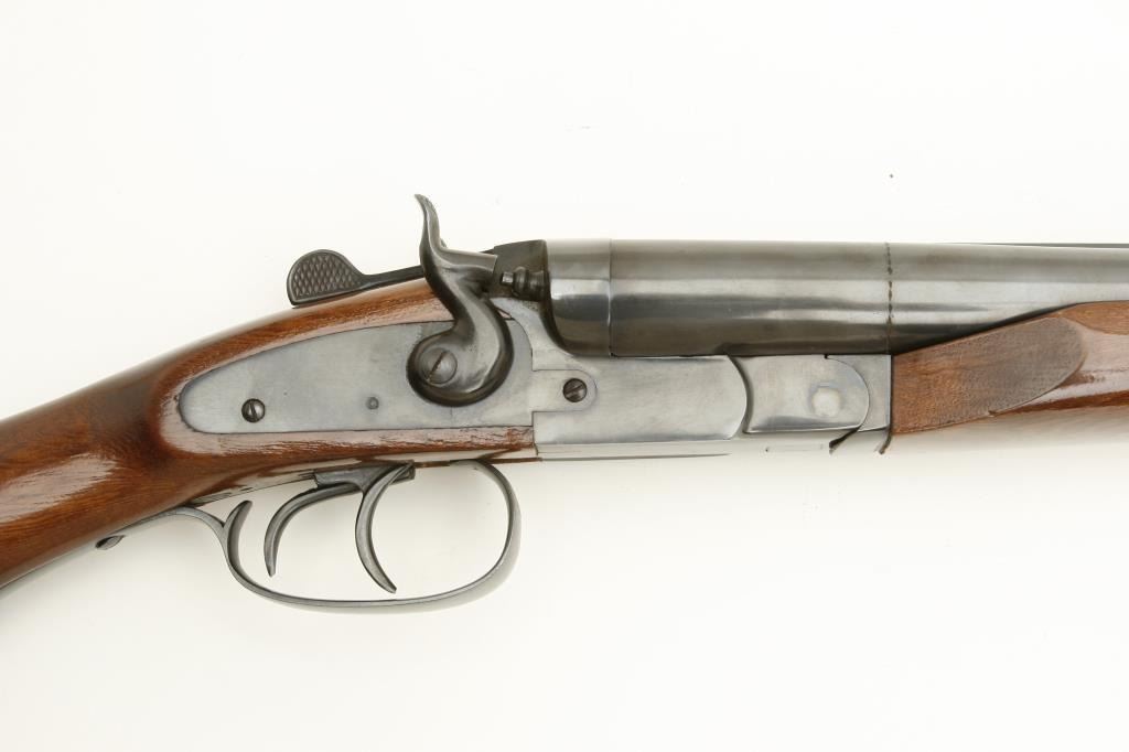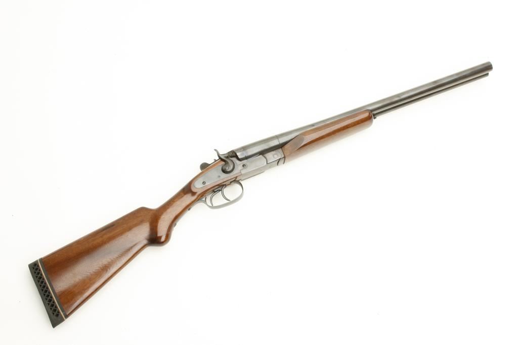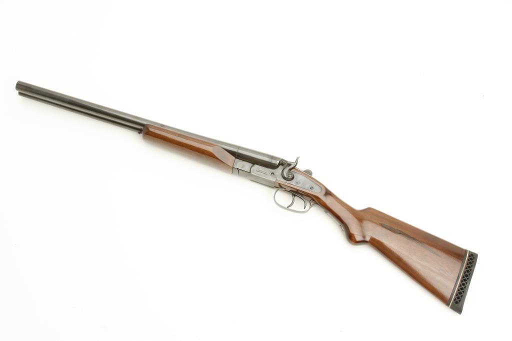 hammer shotgun, 12 gauge, serial #2611. The shotgun is in very good overall condition with 20 1/2” barrels with a full-length filed rib and brass bead front sight. The barrels and receiver retain nearly all of their blued finish with only storage marks observed. The shotgun is marked made in Brazil and features double triggers. The smooth wood stocks are in very good condition with only light handling marks noted. The butt stock ends with a ventilated rubber pad and a 14” LOP to the front trigger. The bores are very good, the action is crisp and markings are sharp. (Modern) Est.: $200-$400.