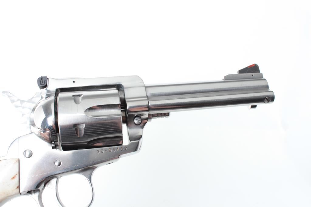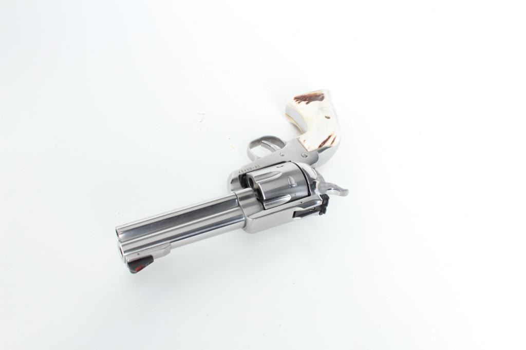 caliber, 4.75” barrel, stainless steel, jeweled hammer and honed action, stag grips, S/N 36-65457, in overall fine to excellent condition. (Modern/PPT). Est.: $350-$700.