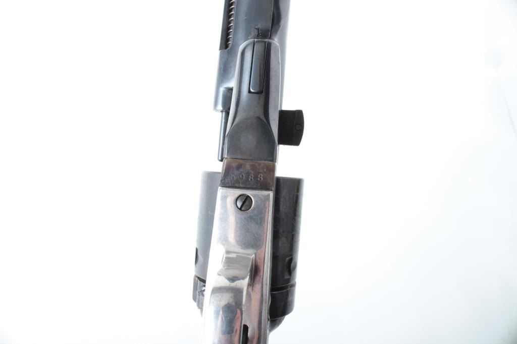 .38 Special caliber, 5.5” barrel, blued and case hardened finish, wood grips, S/N 6988, in overall very good + condition with majority of original finish, crisp action, very good grips and bore. (Modern/PPT). Est.: $250-$500.