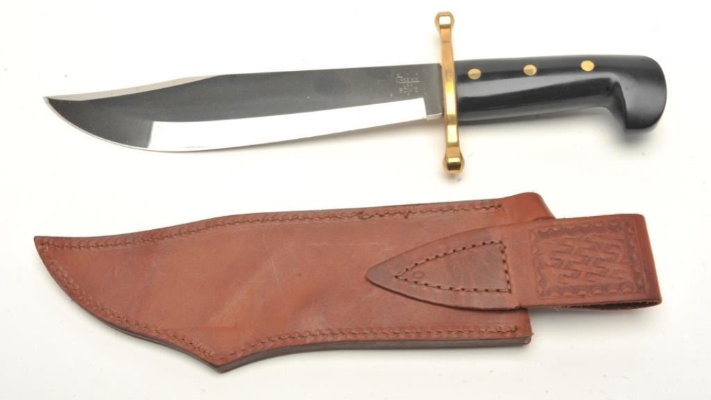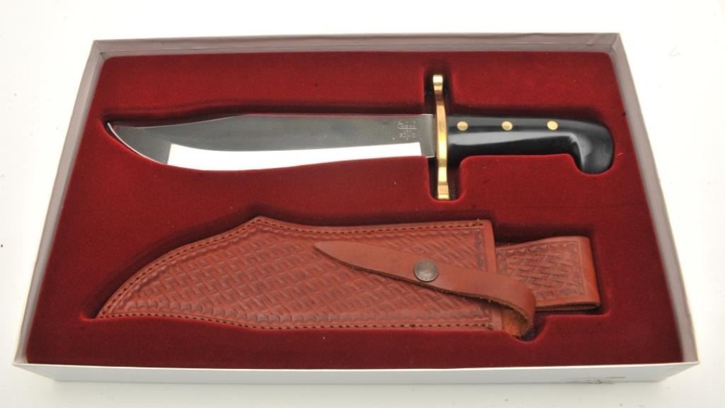 scabbard. Measures 14” overall with a 9 ½” classic Bowie blade. Near mint in box. Shows “U.S.A.” On the blade. Made 2004-2005. Est.: $125-$250