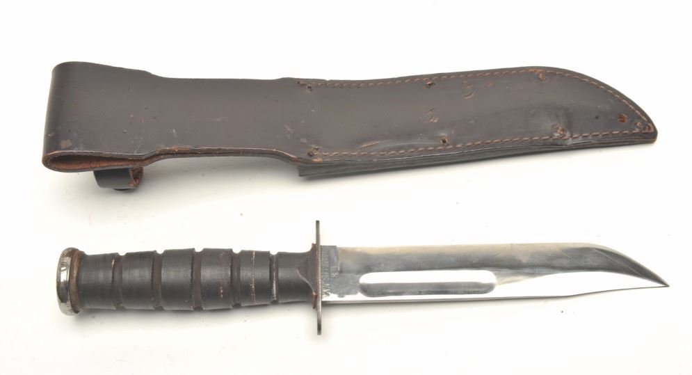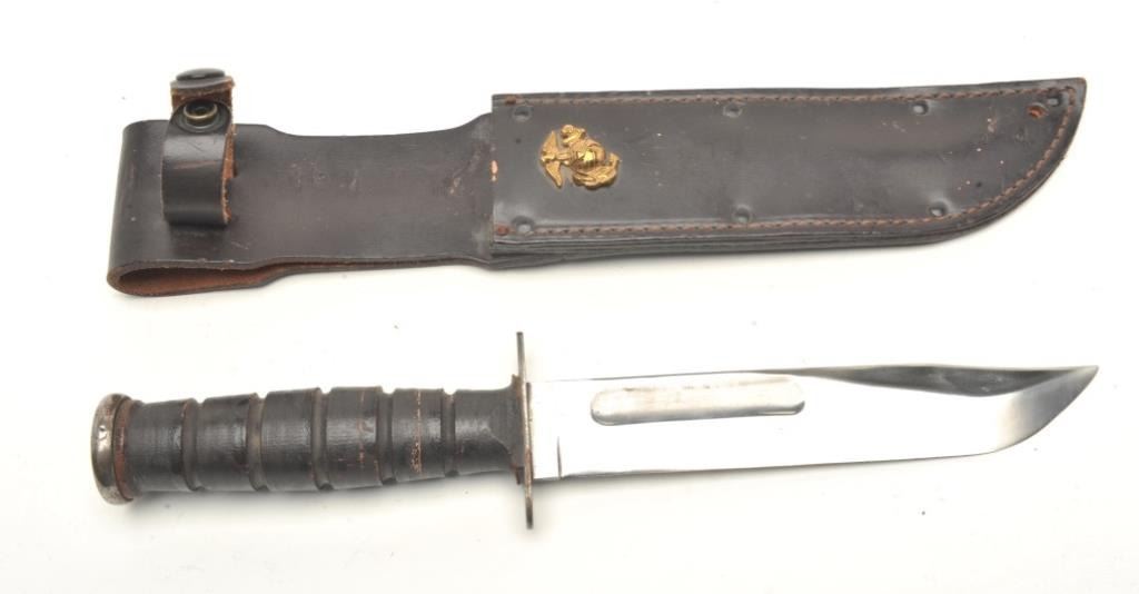 Lot 1556 U.S.M.C. fighting knife Vietnam era with plated blade