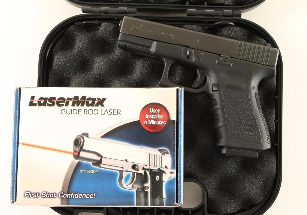 'Third Generation' Compact Austrian made safe action semi-automatic pistol chambered in .40 Smith & Wesson. Features a matte black finish, 4.01" barrel, high contrast sights, LaserMax guide rod laser, 13 round factory magazine, trigger safety and black polymer frame with integral accessory rail & finger groove grip. Includes the original factory hard case with lock, documents and original guide rod. Pistol exhibits little to no wear. Action is smooth, bore is pristine and polymer is fine. Condition is like new in case. ***Modern Firearm***