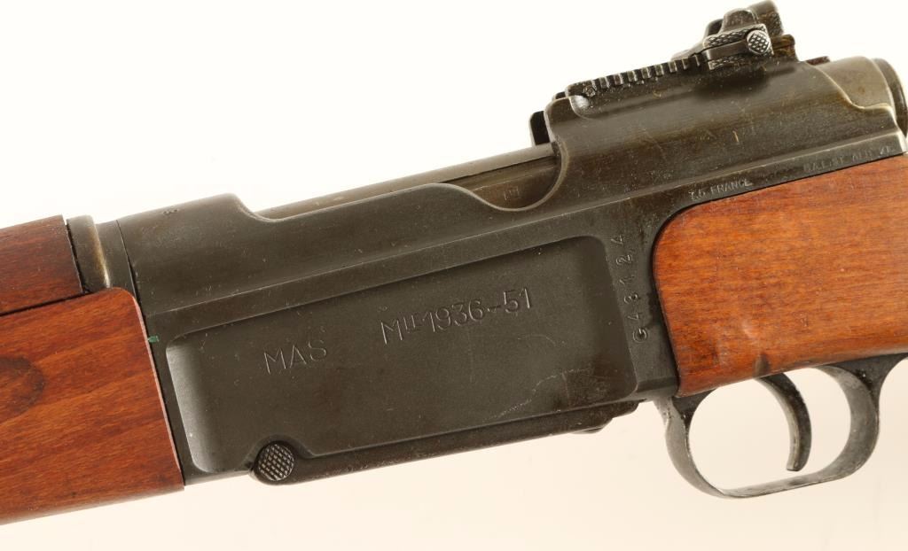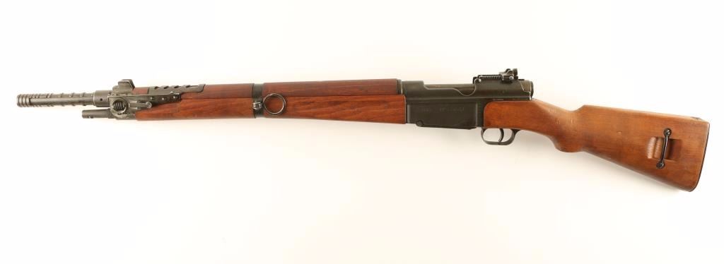 French military bolt action service rifle chambered in 7.5x54mm, circa 1948-1951. Imported by C.A.I. of St. Albans, Vermont with import marks on receiver. Features a parkerized finish, 25" barrel with grenade launcher, winged blade front sight, graduated rear aperture sight to 1,200 meters, grenade sights, spike bayonet, integral box magazine, angled bolt handle, sling swivels, smooth wood handguard and pistol grip shoulder stock with metal buttplate. Rifle shows an even grey finish throughout baring only a few light scuffs. Action is strong, bore is good are wood stocks are fine. Condition is very good+. ***C&R Firearm*** ***Modern Firearm***