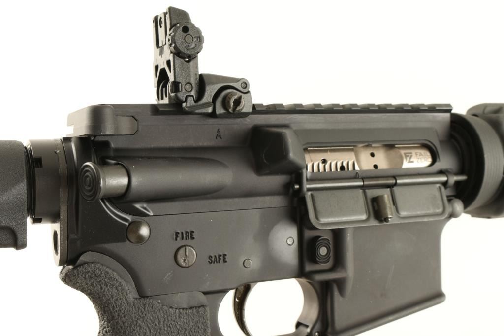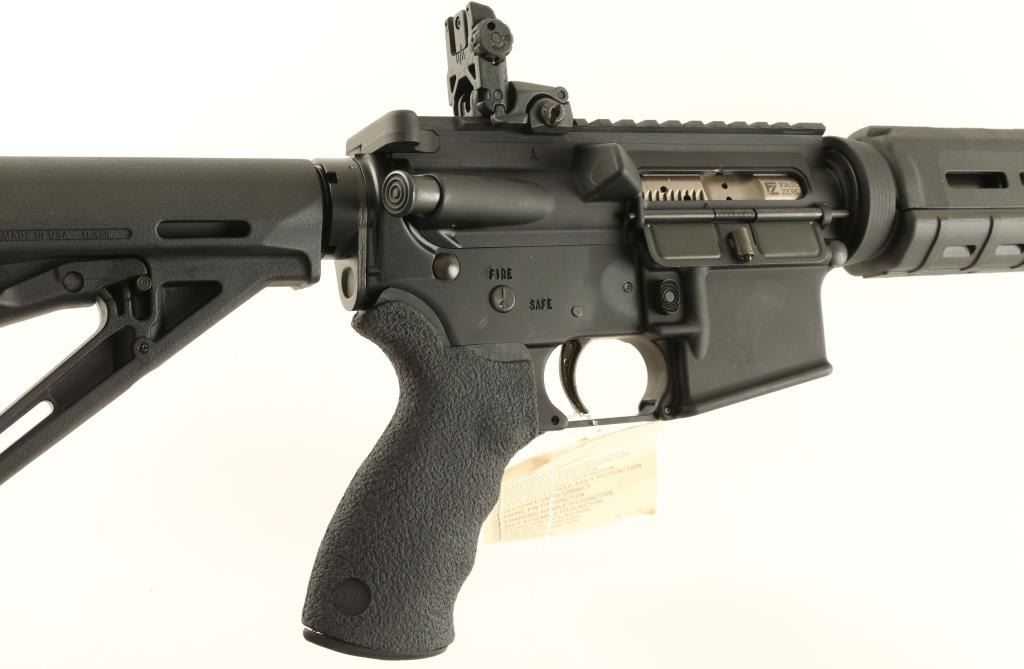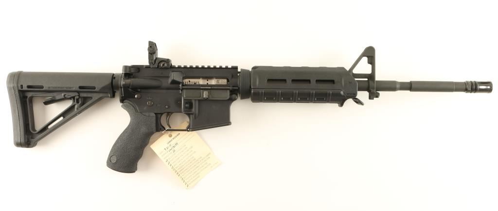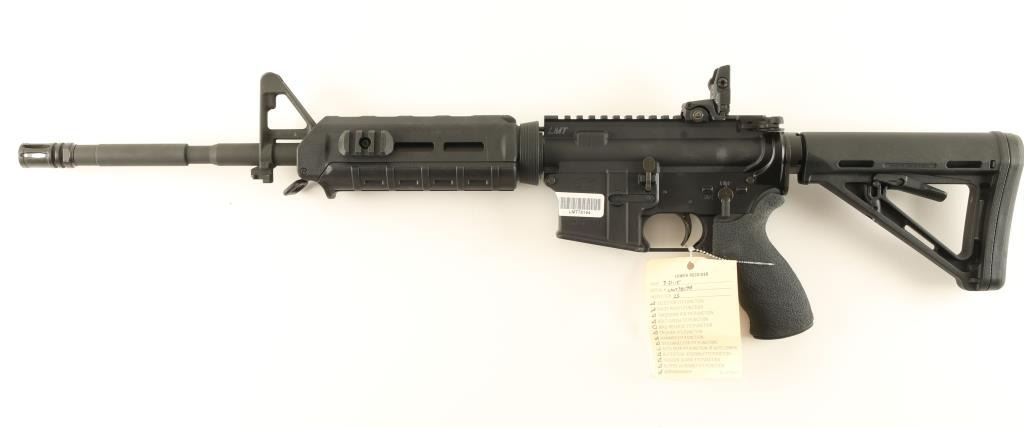 'Lewis Machine & Tool Co.' Top of the line AR platform semi-automatic rifle chambered in 5.56mm Nato. Features a matte black finish, cryogenically treated 16" chrome lined 1:7 M4 barrel, birdcage flash hider, A2 front sight with bayonet lug, flat top receiver, Magpul Mbus adjustable flip up rear sight, Fail Zero M16 BCG, no magazine, shell deflector, forward assist, dust cover, sling swivels, Magpul Moe carbine length handguard, six position Magpul Moe buttstock and LMT rubber over-molded finger groove pistol grip. Rifle shows very little to no wear. Action is crisp, bore is pristine and stocks are fine. Condition is as new in box. ***Modern Firearm***