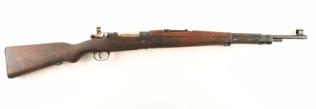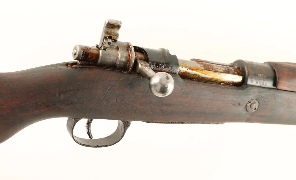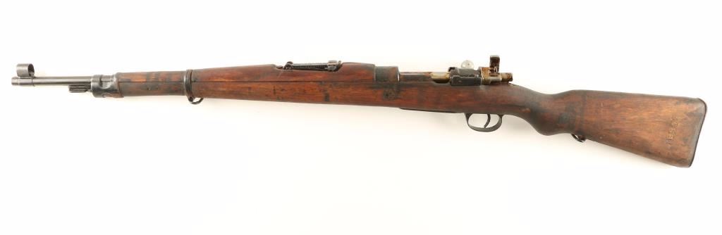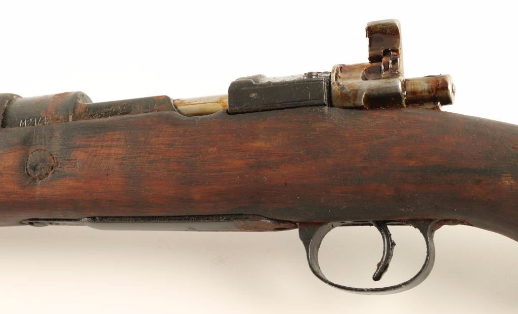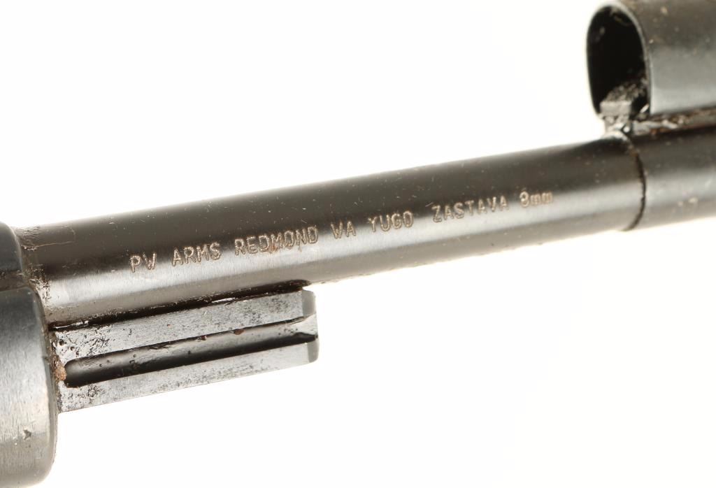Arsenal reconditioned Yugoslavian military bolt action service rifle chambered in 8mm Mauser. Imported by PW Arms of Redmond, Washington with marking on the side of the barrel. Features a blued finish, 23.25" barrel, hooded front sight, adjustable rear graduated sight to 2,000 meters, bayonet lug, straight bolt handle, manual safety, smooth hardwood handguard and full length pistol grip shoulder stock with metal buttplate. Rifle is covered in cosmoline yet shows rust on approximately 35% of the exposed metal surfaces. Action if functional, bore is excellent and wood stocks are good. Condition is near good. ***C&R Firearm*** ***Modern Firearm***