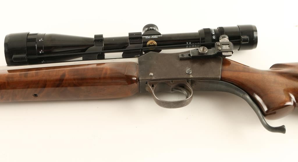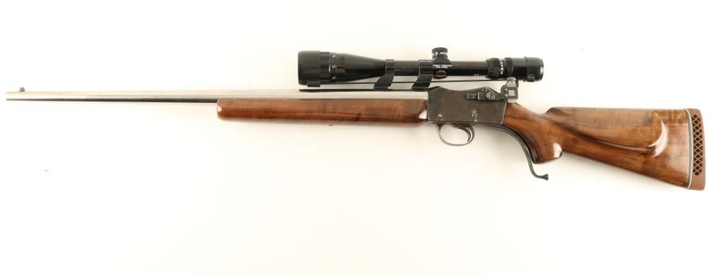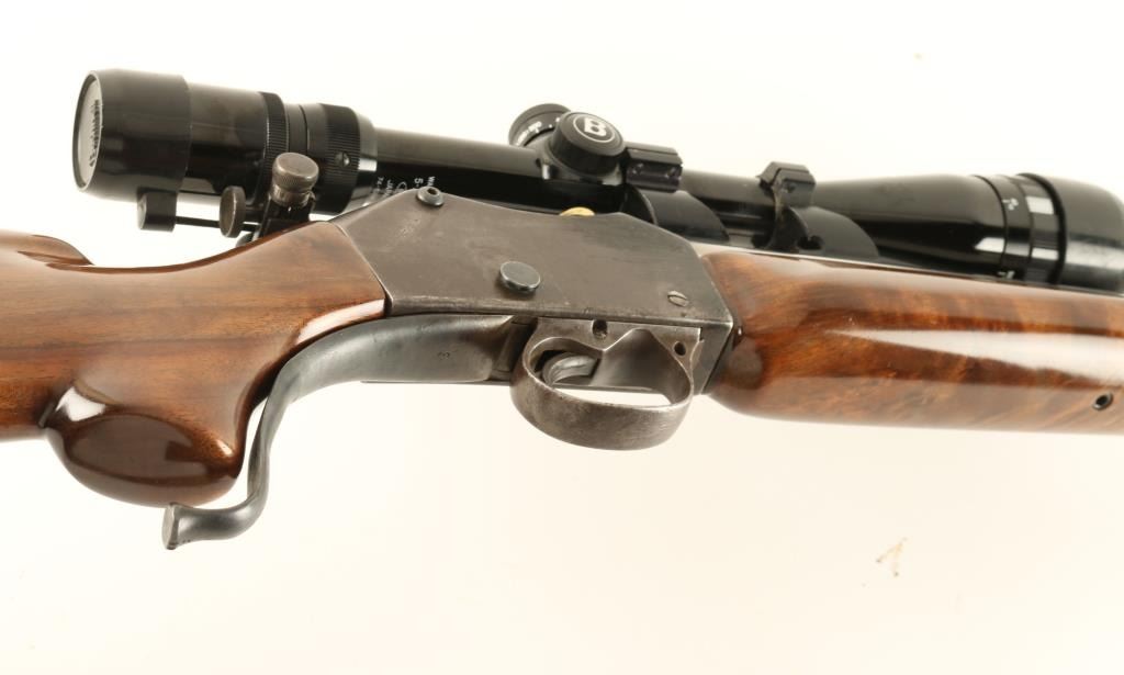 Custom martini action single shot target rifle chambered in .32-40 Winchester, built off an 1870's-1880's vintage receiver. Features a 27 1/4" semi-heavy stainless steel barrel, dovetailed blade front sight, side mounted Redfield aperture sight, Bushnell Sportview 5-20x scope, serrated trigger, custom curved lever, high gloss figured wood forend and pistol grip shoulder stock with cheek rest & rubber recoil pad. Barrel shows only light handling wear and receiver bares an old refinish that has now turned to a brown patina. Action is crisp, bore is pristine and custom wood stocks are fine. Condition is very good. ***Antique Firearm***
