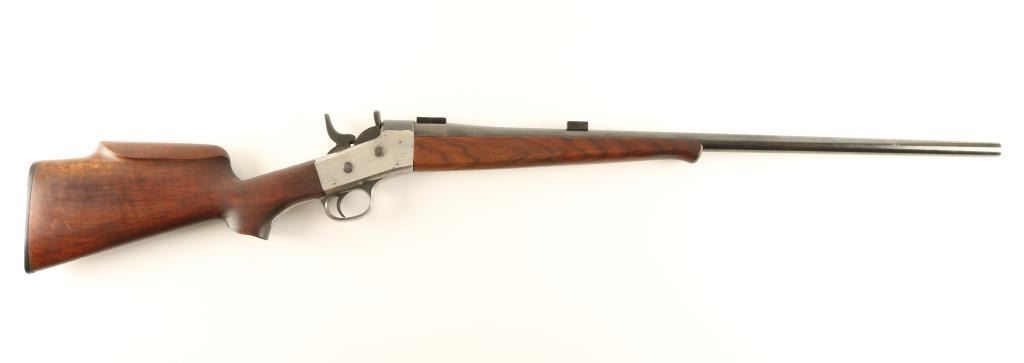 Customized single shot rolling block rifle chambered in .22 Savage, built off an 1868-1888 vintage receiver. Features a blued 27 1/2" semi-heavy barrel, no provisions for sights, installed scope blocks, smooth trigger, checkered hammer spur, custom arched lower tang, smooth schnabel wood forend and pistol grip shoulder stock with high comb cheek rest with Fajen buttplate. Barrel retains approximately 70% of it's blued finish with scattered light pitting and scratches from extensive cleaning, Receiver is in-the-white with exception of the blued top strap and shows old shallow pitting and the bottom and left side flat. Action is solid, bore is excellent and custom wood stocks are fine with a small crack on the left side of the forearm. Condition is good. ***Antique Firearm***