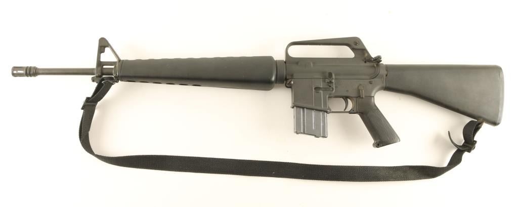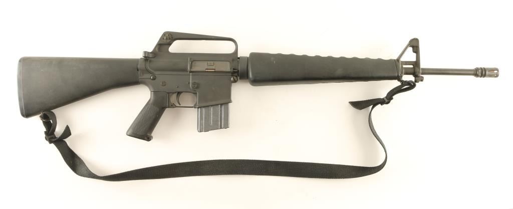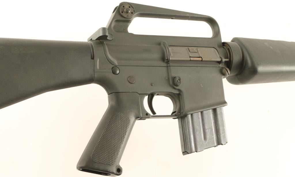 Gas-operated semi automatic sporting rifle chambered in .223 Remington, circa 1981. Features a 20" chrome-bore barrel with bird cage style flash hider, adjustable A2 winged front sight with bayonet lug, dual aperture rear sight in carrying handle, triangular hand guard, correct BCG, checkered black plastic pistol grip, 20 round factory magazine, safety selector, black nylon sling, and black composite shoulder stock with cleaning kit. Finish shows only light wear and few scuffs from handling & storage. Markings are crisp and there is surface rust on the inside of the flash hider. Action is sound, bore is very good, and stocks are fine. Condition is near excellent. ***Modern Firearm***