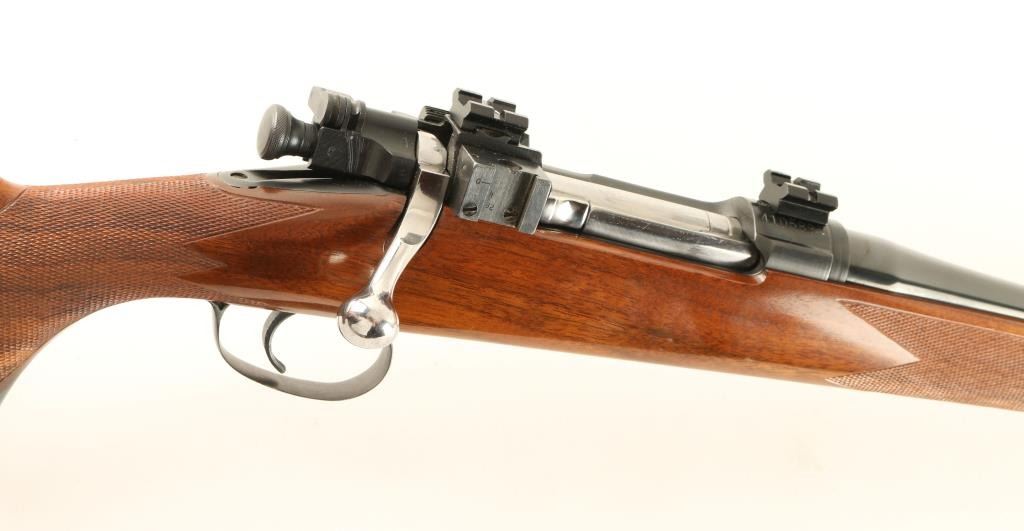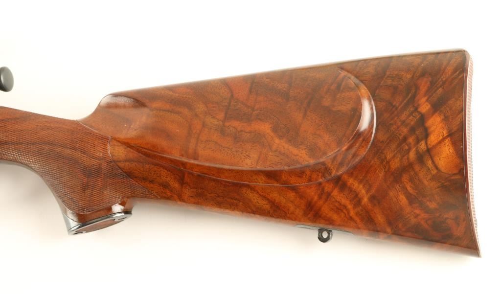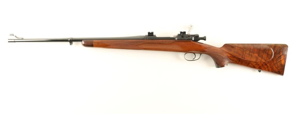 Beautifully crafted bolt action sporting rifle chambered in .30-06 Springfield and built off a Remington 03-A3 action of 1943 vintage. The custom work was done by master gunsmith Sterling Davenport, who has since retired. Features a blued finish, 22" unmarked barrel, ramped blade front sight, Lyman side mounted sight base, scope bases, polished bolt, internal box magazine with cut off, safety switch on bolt, and serrated trigger. Stocked in premium grade marbled walnut which features classically inspired swept right hand cheekpiece, ebony forend tip, and cleanly cut borderless point pattern checkering that wraps over top of grip. Other fine touches are inlet sling eyes at the butt, skeleton steel grip cap with checkered center, and the trapdoor buttplate with three round ammo compartment. Rifle exhibits approximately 97% of it's blued finish with few small losses on the barrel. Action is crisp, bore is pristine and wood stock is fine with a 2.5" scratch on the right side. This is a great opportunity to own a beautiful rifle produced by a sought after gunsmith who's work will certainly only appreciate in value. Condition is excellent ***C&R Firearm*** ***Modern Firearm***