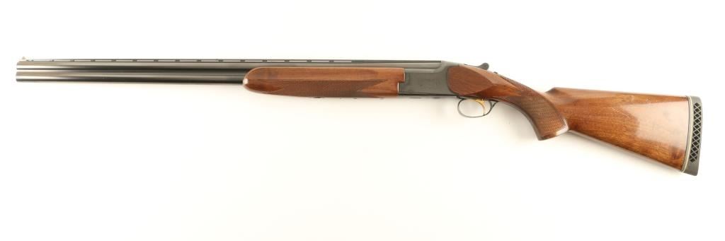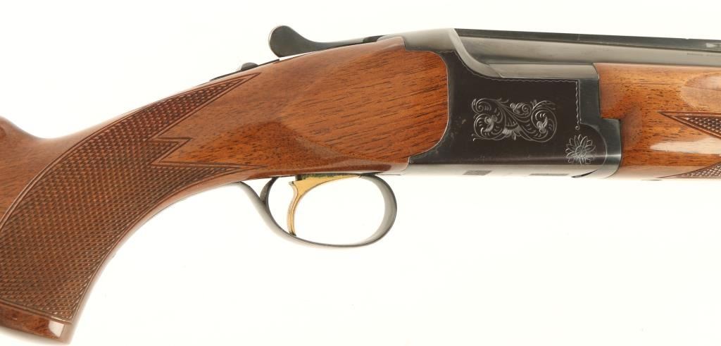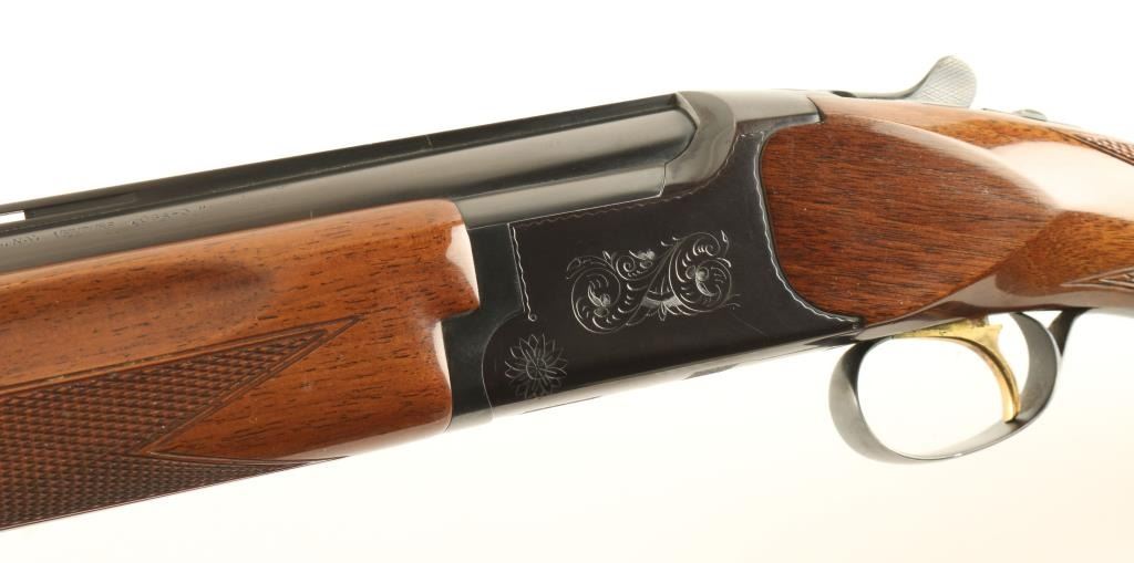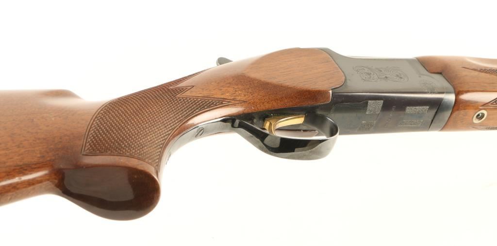 Quality Japanese made under & over shotgun chambered for 3" 20 gauge shells, manufactured by Miroku. Features a blued finish, 28" vent ribbed barrels with full/modified chokes, extractors, bead sights, scroll engraved receiver, single gold trigger, sliding tang safety/selector, checkered walnut forend and pistol grip shoulder stock with recoil pad. Shotgun exhibits approximately 95% of it's blued finish with light muzzle wear, finish loss from where thew forend rubs on the barrel and some light edge wear on the ventilation rib. Action is smooth, bores are bright and wood stocks are very good with some minor imperfections. Condition is near excellent. ***Modern Firearm***