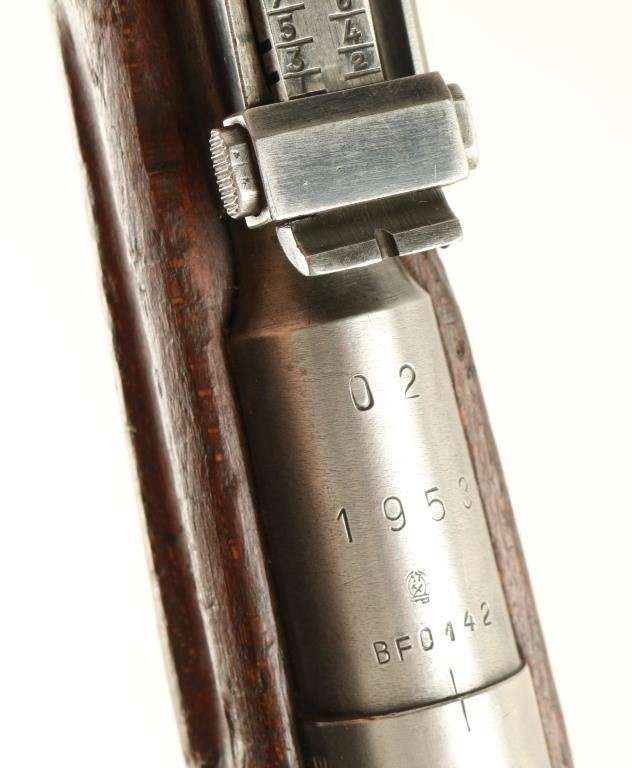 Hungarian bolt action service rifle chambered in 7.62x54R, circa 1953. Features a blued finish, 20.25" barrel, hooded post front sight, graduated rear sight to 1,000 meters, folding bayonet, two barrel bands, 5 round fixed magazine, straight bolt handle, smooth wood handguard and straight grip shoulder stock with metal buttplate. Matching serial numbers on barrel, buttplate, receiver & floorplate. Import marks on barrel. Rifle is mostly in the white with traces of finish in protected areas. Action is very smooth, bore is dark with good rifling and wood stocks are good+. Condition is near good. ***C&R Firearm*** ***Modern Firearm***