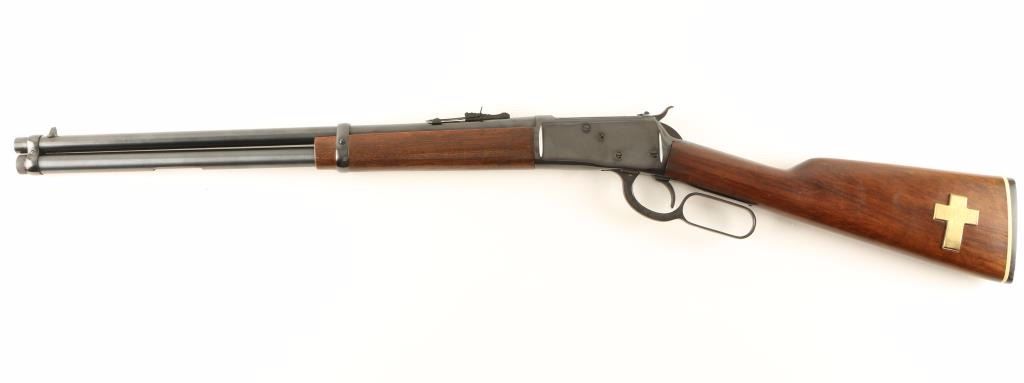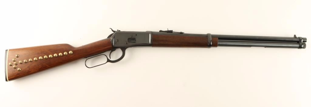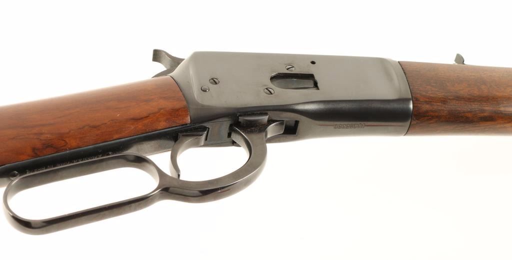 Powerful lever action repeating rifle chambered in .454 Casull. Features a blued finish, 20" barrel, full length magazine tube, blade front sight with white dot, adjustable rear sporting sight, smooth trigger, rotary safety on top of the bolt, serrated hammer spur, smooth wood forend and pistol grip shoulder stock with inlayed brass cross & geometric tack design. Includes the original factory box with documents. Rifle retains approximately 98% of it's blued finish showing very little wear. Action is smooth, bore is excellent and wood stocks are very good. Condition is excellent in box. ***Modern Firearm***