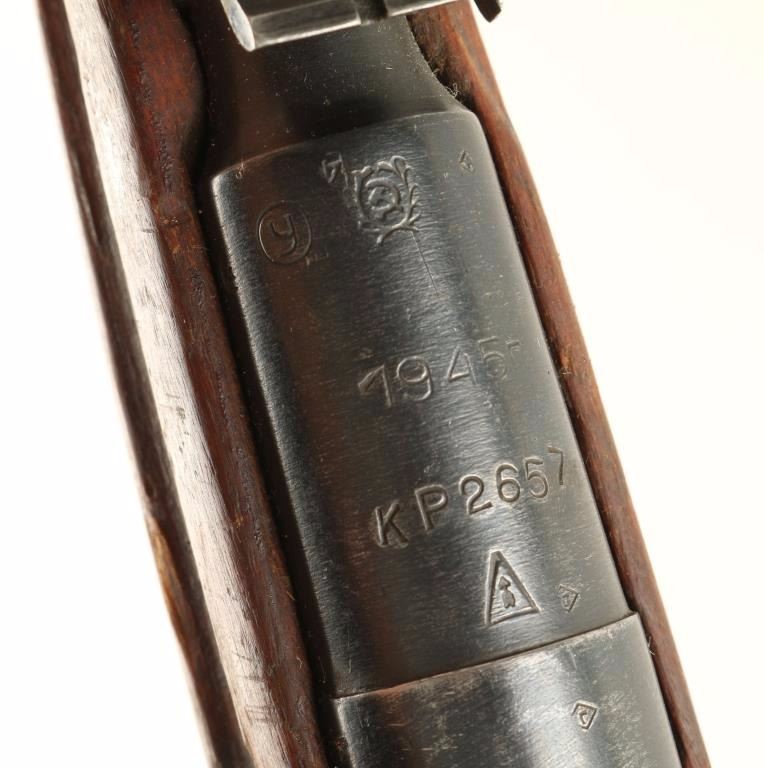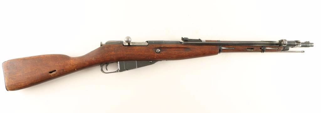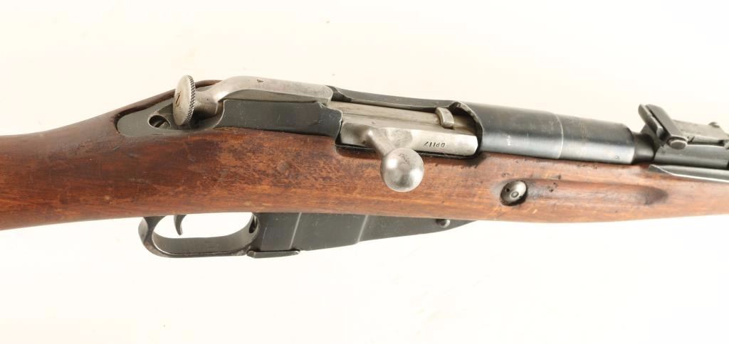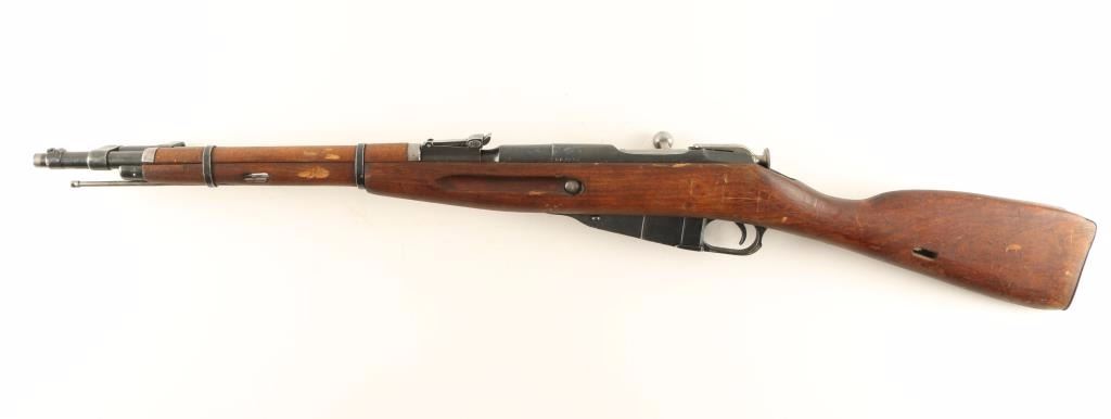 Reconditioned Russian military bolt action service rifle chambered in 7.62x54R, circa 1945. Features a blued finish, Izhevsk marked 20.25" barrel, hooded post front sight, graduated rear sight to 1,000 meters, cleaning rod, folding bayonet, two barrel bands, 5 round fixed magazine, straight bolt handle, smooth wood handguard and straight grip shoulder stock with metal buttplate. Matching serial numbers on barrel, buttplate, receiver & floorplate. Import marks on barrel. Rifle retains approximately 90% of it's blued finish showing light wear. Action is smooth, bore is dark & dirty and wood stocks are good. Condition is good. ***C&R Firearm*** ***Modern Firearm***