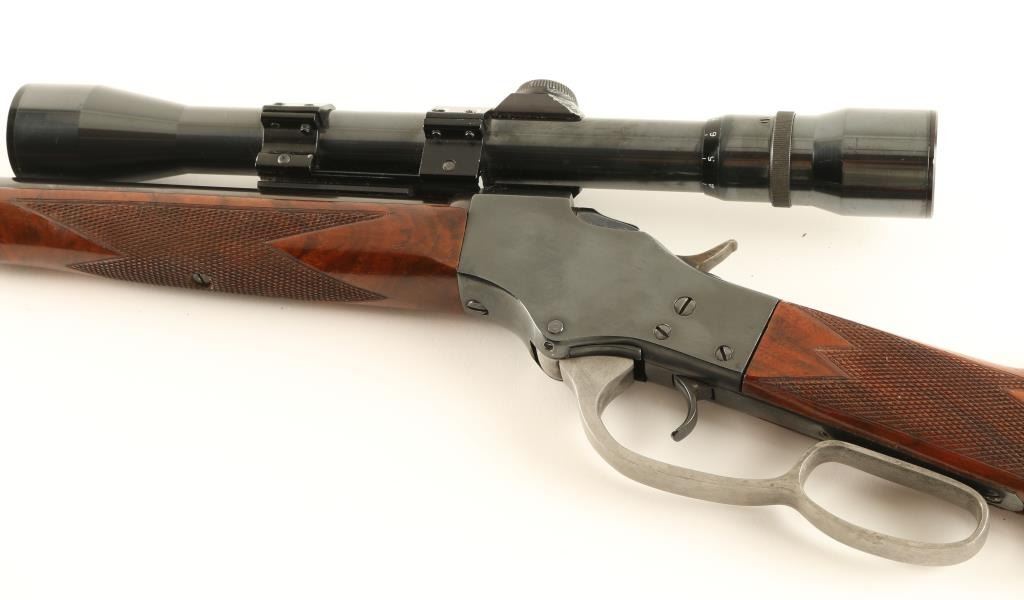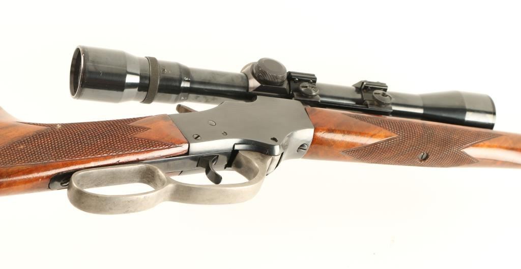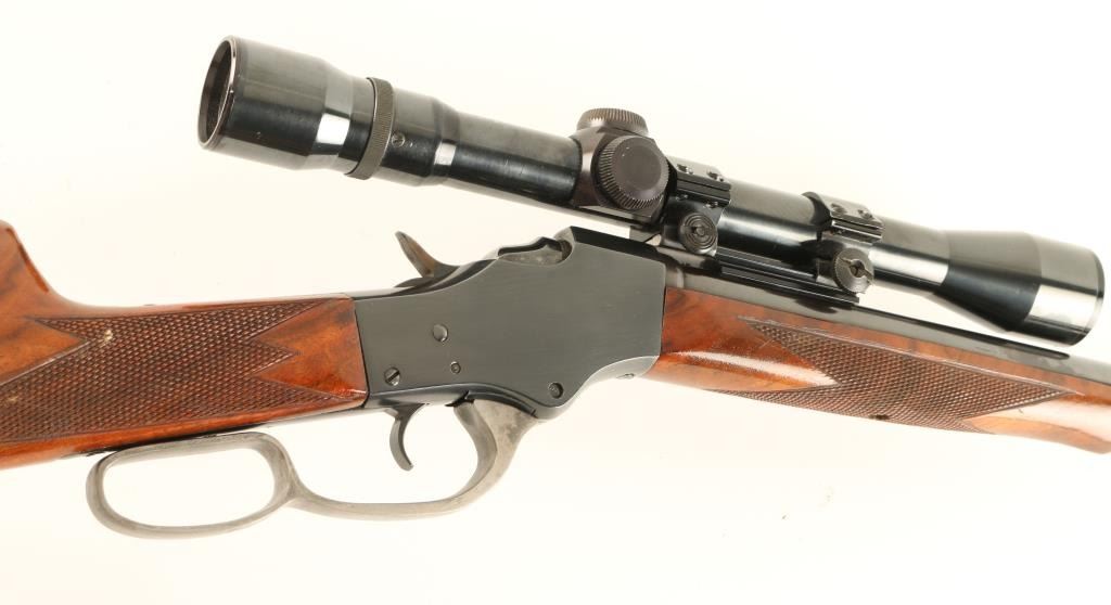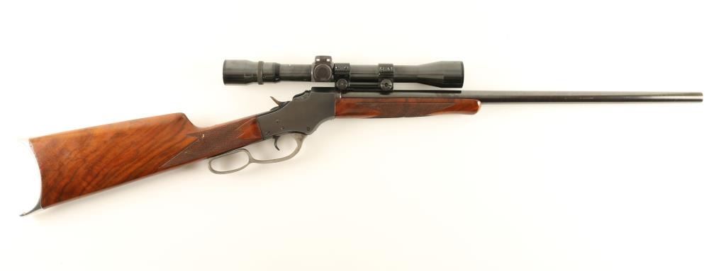 Customized single shot falling block rifle chambered in .219 Zipper, utilizing a 1903-1916 vintage receiver. Features a blued finish, 22 7/8" semi-heavy barrel, no provisions for sights, Weaver C9V 3-9x scope, smooth trigger, small loop lever, checkered hammer spur, checkered figured walnut forend and straight grip shoulder stock with cheek rest & Schuetzen style buttplate. Rifle retains approximately 94% of it's custom blued finish showing minor losses, slight edge wear and light handling marks. Action is crisp, bore is excellent and wood stocks are fine. Condition is excellent. ***C&R Firearm*** ***Modern Firearm***