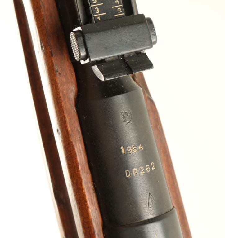 Romanian bolt action service rifle chambered in 7.62x54R, circa 1954. Features a blued finish, 20.25" barrel, hooded post front sight, graduated rear sight to 1,000 meters, cleaning rod, folding bayonet, two barrel bands, 5 round fixed magazine, straight bolt handle, smooth wood handguard and straight grip shoulder stock with metal buttplate. Matching serial numbers on barrel, buttplate, floorplate, receiver & bolt. Import marks on barrel. Rifle retains approximately 95% of it's blued finish showing few losses. Action is smooth, bore is good+ and wood stocks are very good. Condition is very good. ***C&R Firearm*** ***Modern Firearm***