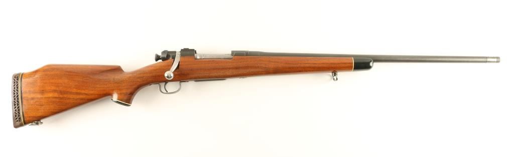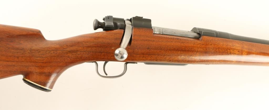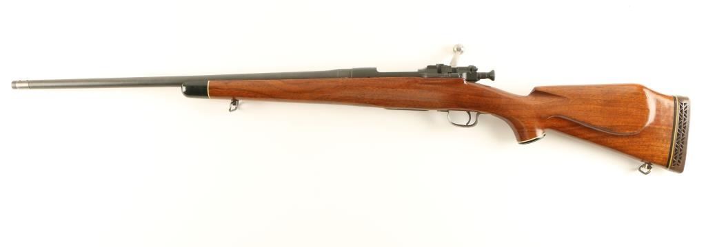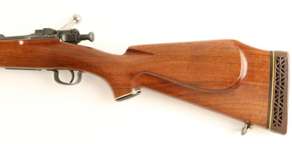 Sporterized US military bolt action service rifle rechambered in .300 Winchester Magnum, originally produced in 1943. Features a parkerized finish, 24" floated barrel, removed sights, drilled & tapped receiver, internal box magazine with cut-off switch, serrated trigger, Buehler safety, sling swivels and smooth walnut pistol grip shoulder stock with cheek rest, ebony caps & rubber recoil pad. Rifle retains approximately 95% of it's parkerized finish showing a few small scrapes on the barrel and wear from formerly mounted scope bases. Action is smooth with a light trigger pull, bore is excellent and custom wood stock is fine. Condition is near excellent. ***C&R Firearm*** ***Modern Firearm***