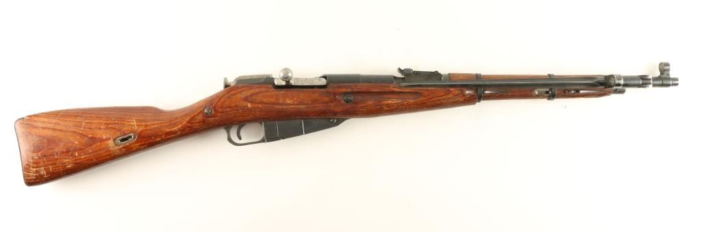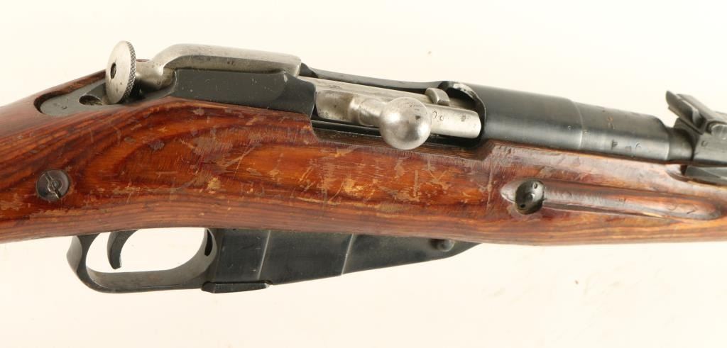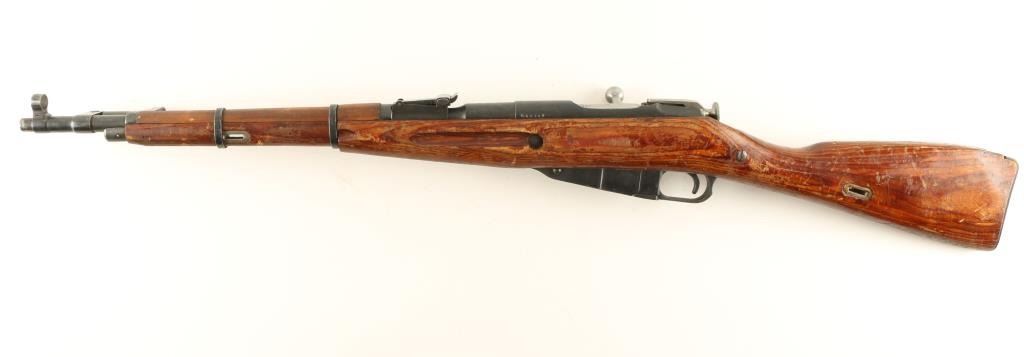 Reconditioned Russian military bolt action service rifle chambered in 7.62x54R, circa 1945. Features a blued finish, Izhevsk marked 20.25" barrel, hooded post front sight, graduated rear sight to 1,000 meters, folding bayonet, two barrel bands, 5 round fixed magazine, straight bolt handle, smooth wood handguard and straight grip shoulder stock with metal buttplate. Matching serial numbers on barrel, buttplate, floorplate & bolt. Import marks on barrel. Rifle retains approximately 95% of it's blued finish showing few losses. Action is smooth, bore is dark with good rifling and wood stocks are good. Condition is good. ***C&R Firearm*** ***Modern Firearm***