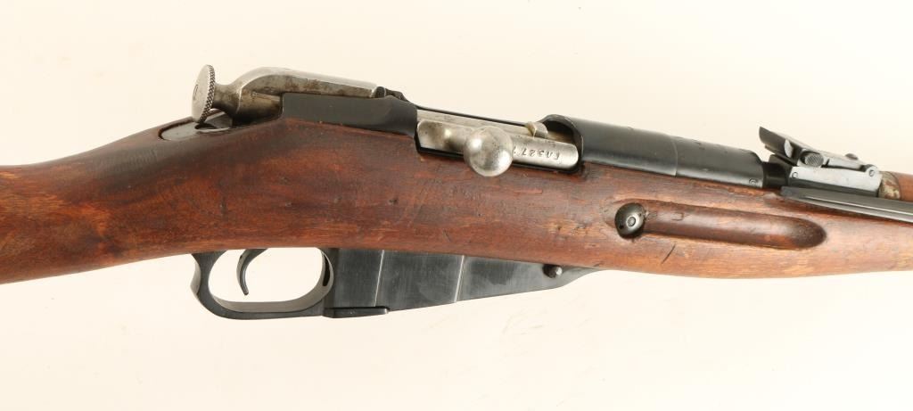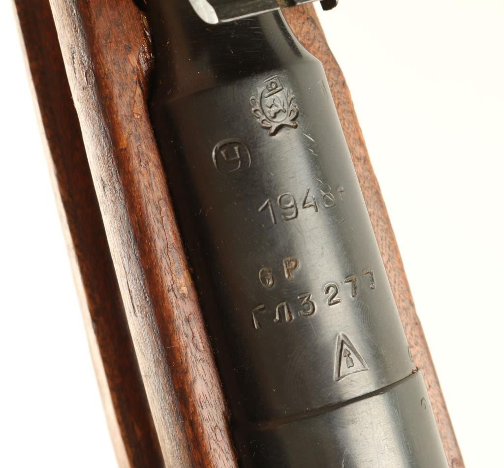 Reconditioned Russian military bolt action service rifle chambered in 7.62x54R, circa 1948. Features a blued finish, Izhevsk marked 20.25" barrel, hooded post front sight, graduated rear sight to 1,000 meters, folding bayonet, two barrel bands, 5 round fixed magazine, straight bolt handle, smooth wood handguard and straight grip shoulder stock with metal buttplate. Matching serial numbers on barrel, buttplate, receiver, floorplate & bolt. Import marks on barrel. Rifle retains approximately 95% of it's blued finish showing few losses. Action is smooth, bore is good and wood stocks are very good. Condition is very good. ***C&R Firearm*** ***Modern Firearm***