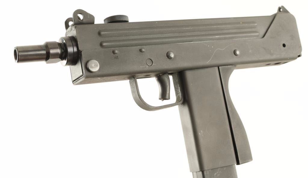 Stamped steel semi automatic pistol chambered in 9mm Parabellum. Features a parkerized finish, 5.5" barrel, fixed sights, safety switch, black synthetic backstrap, round charging handle, padded trigger and 30 round magazine. Finish shows only light handling wear with minimal scratches and rubs. Action is strong and bore is excellent. Condition is excellent. ***Modern Firearm***