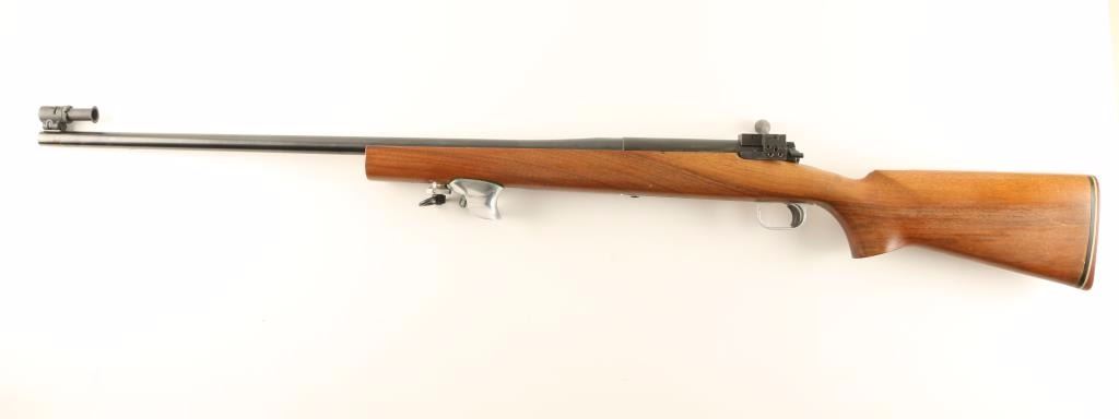 South African single shot bolt action target rifle chambered in 7.62 Nato. Features a floated 27.5" heavy Schultz & Larsen barrel with blued finish, globe front sight, side mounted sight block, safety switch on bolt, wide serrated trigger shoe, accessory rail with sling swivel & aluminum foregrip, and a one piece wood pistol grip shoulder stock with recoil pad. Rifle shows some light scattered scratches on the barrel and bares scuffs on the matte grey finished receiver. Action is smooth, bore is excellent and wood stock is very good. Condition is very good. ***Modern Firearm***