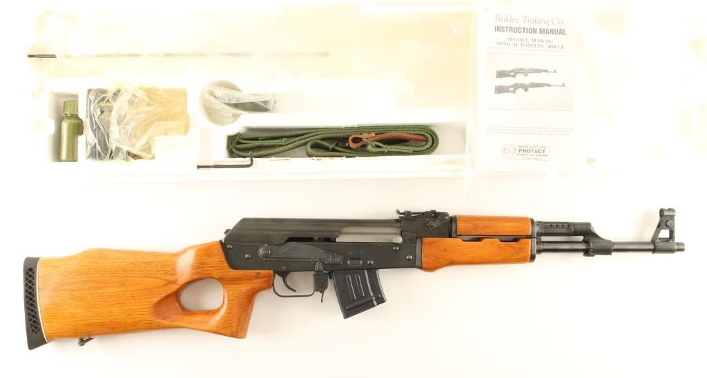 Chinese made copy of the AK-47 rifle chambered in 7.62x39mm. Imported by Briklee Trading Co. with light marks on the receiver. Features a blued finish, 16.25" barrel, hooded post front sight, graduated rear sight to 800 meters, 10 round magazine, safety selector, smooth trigger, sling points, wood forend, handguard and thumbhole pistol grip shoulder stock with rubber recoil pad. Includes original shipping box with styrofoam insert, two extra magazines, sling, cleaning kit, cleaning rod, and documents. Finish shows only handling marks & scuffs with no major wear or loss of finish. Action is crisp, bore is perfect, and wood stocks are fine. Likely unfired since the factory. Condition is like new in box. ***Modern Firearm***