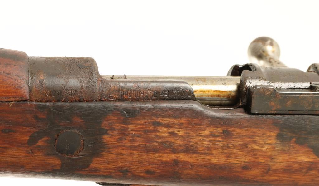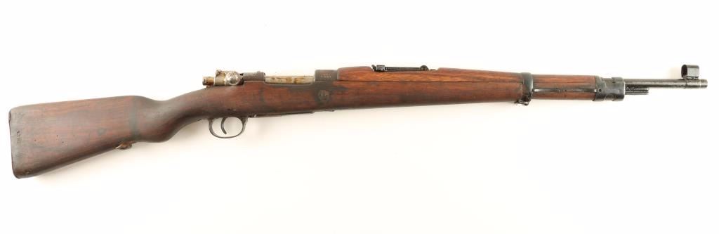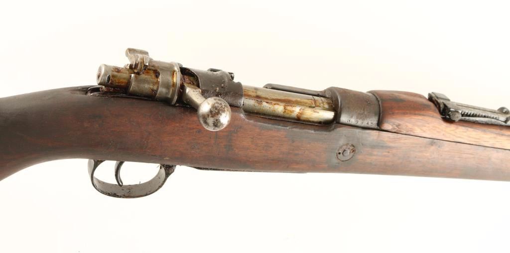 Arsenal reconditioned Yugoslavian military bolt action service rifle chambered in 8mm Mauser. Imported by PW Arms of Redmond, Washington with marking on the side of the barrel. Features a blued finish, 23.25" barrel, hooded front sight, adjustable rear graduated sight to 2,000 meters, bayonet lug, straight bolt handle, manual safety, smooth hardwood handguard and full length pistol grip shoulder stock with metal buttplate. Rifle is covered in cosmoline yet shows rust on approximately 28% of the exposed metal surfaces. Action if functional, bore is excellent and wood stocks are good. Condition is near good. ***C&R Firearm*** ***Modern Firearm***