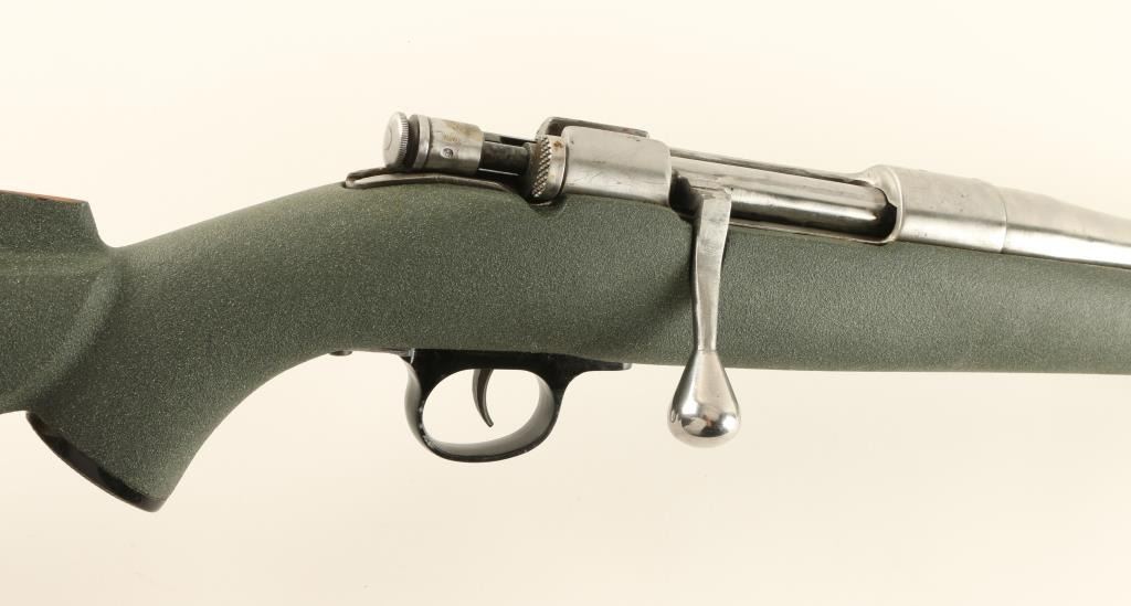Sporterized Italian military bolt action carbine rechambered in .357 Max. Features a polished in-the-white finish, 18.8" barrel, no sights, drilled & tapped receiver, large teardrop shaped bolt handle, manual safety, smooth trigger, swivel studs, and painted wood stock accented with a stained cheek rest. Rifle's magazine has been removed making this a single shot rifle without a guide plate. Finish shows some machining marks on the barrel and scatted superficial scratches. Action is smooth, bore is excellent and stock is near fine. Condition is very good as customized. ***C&R Firearm*** ***Modern Firearm***