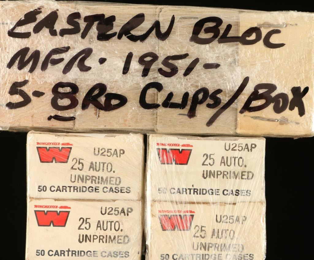 Including 5 - 8rd Eastern Block 1951 and 200 rds of .25 ACP factory new Win brass.