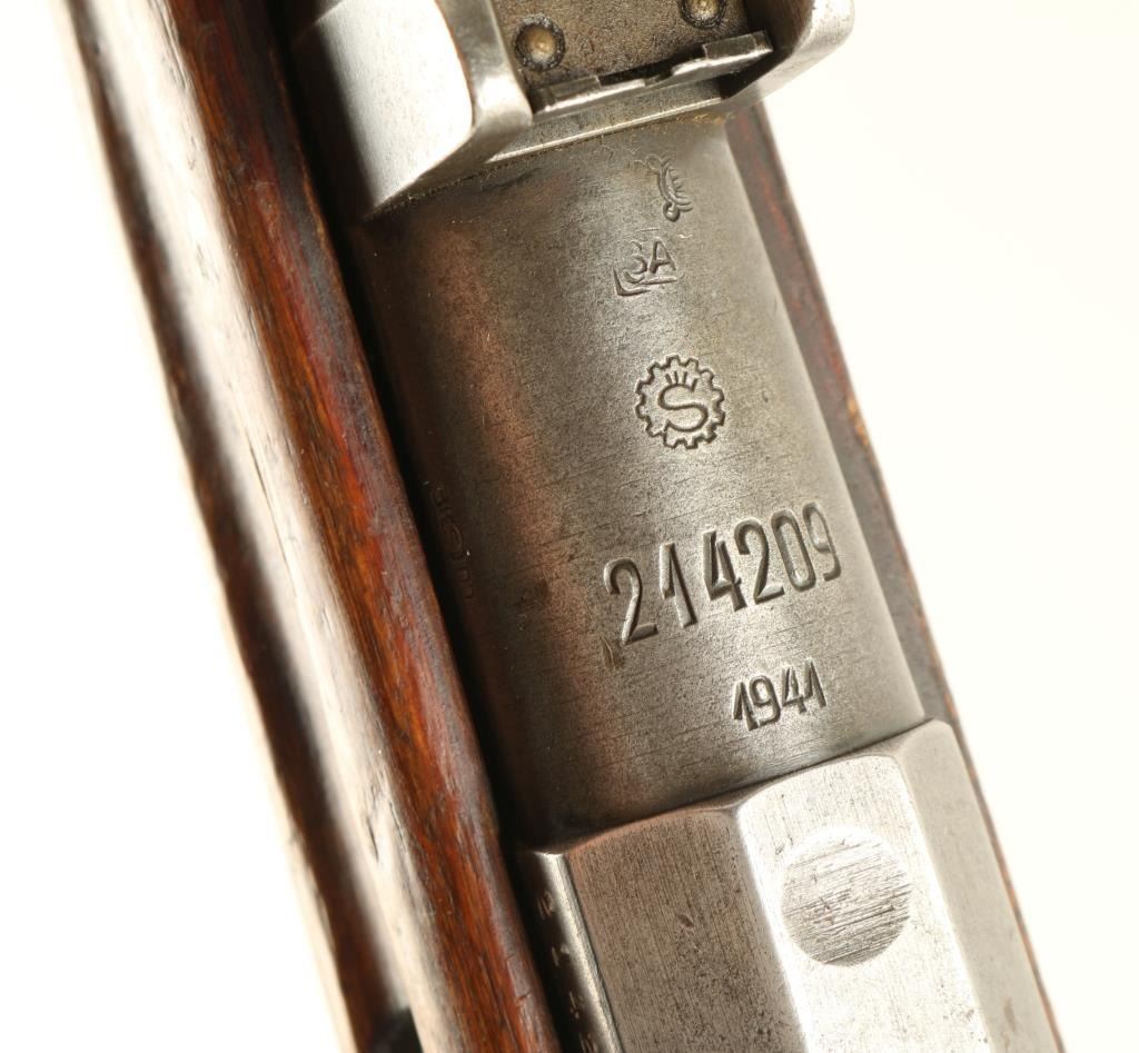 Finish Military bolt action service rifle chambered in 7.62x54R, circa 1944. Features a blued finish, Sako marked 27" barrel, winged front sight, graduated rear sight to 1,000 meters, hinged front barrel band with bayonet lug, cleaning rod, sling swivels, octagonal receiver, straight bolt handle, internal box magazine, smooth wood handguard and finger-jointed semi pistol grip shoulder stock with metal buttplate. Serial numbers match on barrel, receiver and bolt handle. Import marks on barrel. Rifle is primarily in the white with finish on the magazine and in protected areas. Action is smooth, bore is semi-bright, and wood stocks are good. Condition is near good. ***C&R Firearm*** ***Modern Firearm***