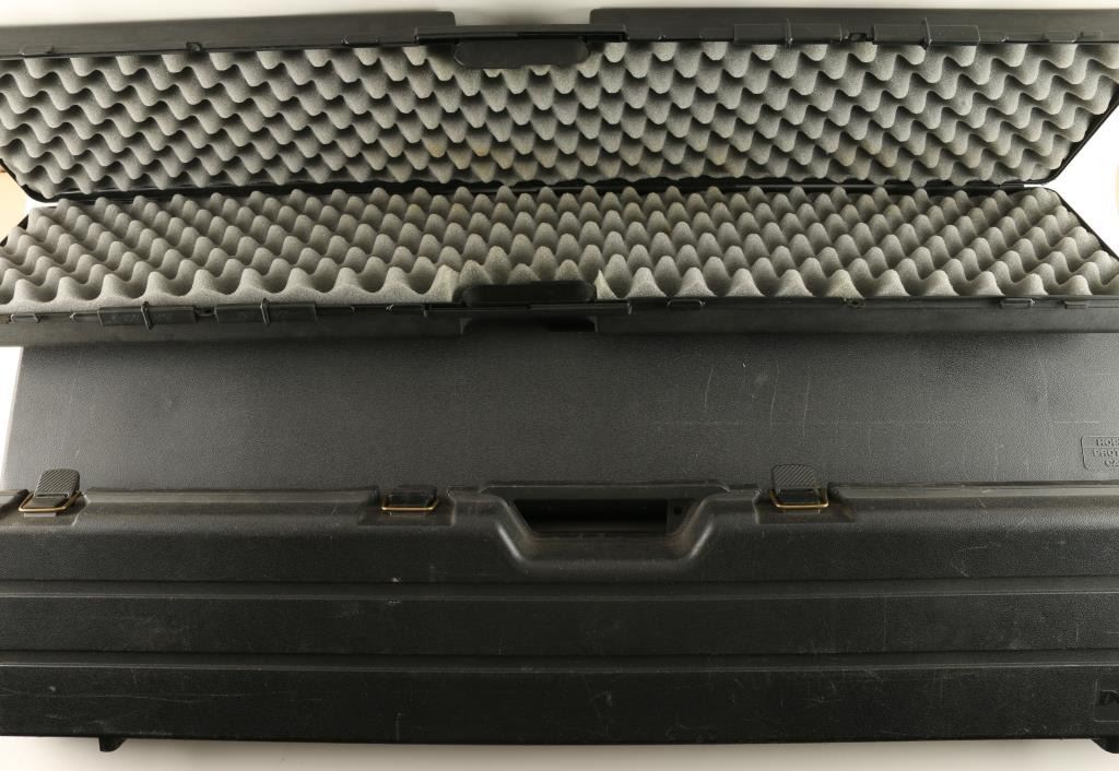 Including a black Bushmaster case, a black Hoppe's Protecto case, and a black Doskocil case, all with foam interior.