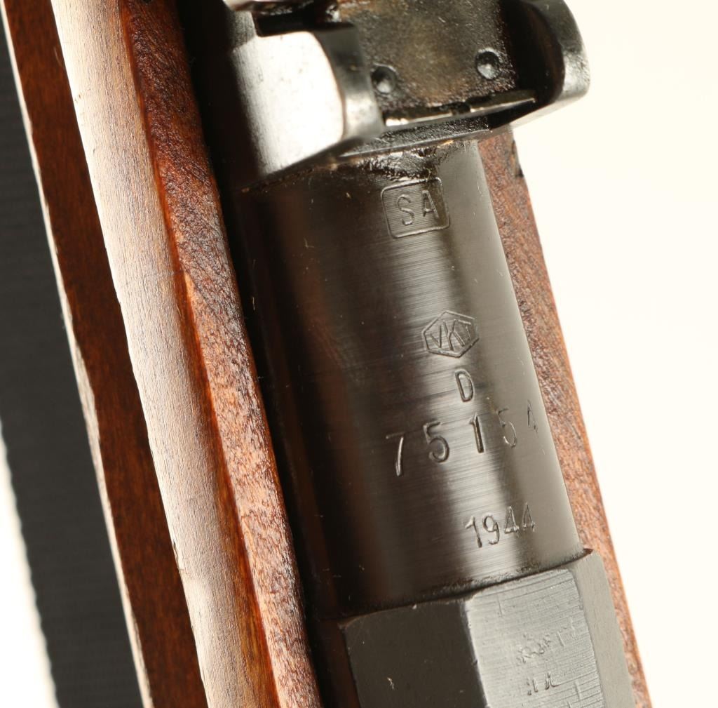 Finnish Military bolt action service rifle chambered in 7.62x54R, circa 1944. Features a blued finish, VKT marked 27" barrel, winged front sight, graduated rear sight to 1,000 meters, hinged front barrel band with bayonet lug, cleaning rod, black nylon sling, octagonal receiver, straight bolt handle, internal box magazine, smooth wood handguard and finger-jointed semi pistol grip shoulder stock with metal buttplate. Serial numbers match on barrel, receiver and bolt handle. Import marks on barrel. Rifle retains approximately 95% of it's blued finish showing little wear. Action is smooth, bore is excellent and later style wood stocks are near fine. Condition is excellent. ***C&R Firearm*** ***Modern Firearm***