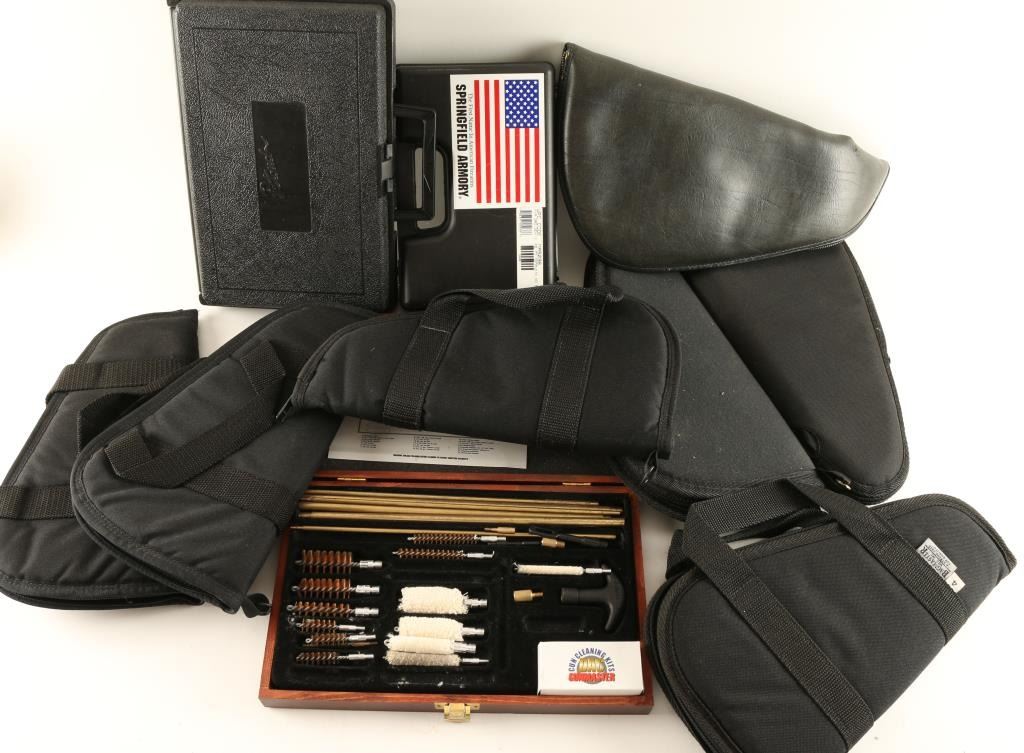 Includes 2 plastic pistol cases, 8 canvas pistol boots and a Gunmaster Universal gun cleaning kit.