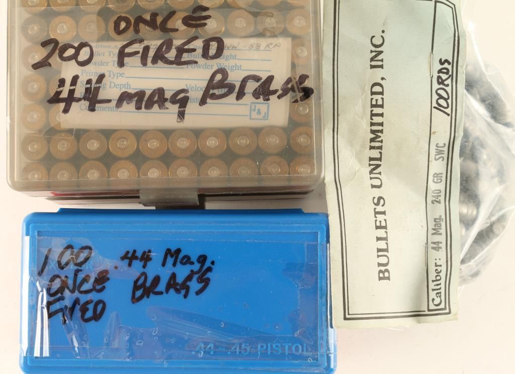 Includes 300 rds of once fired .44 Mag Brass and 100 rds of 240gr bullets