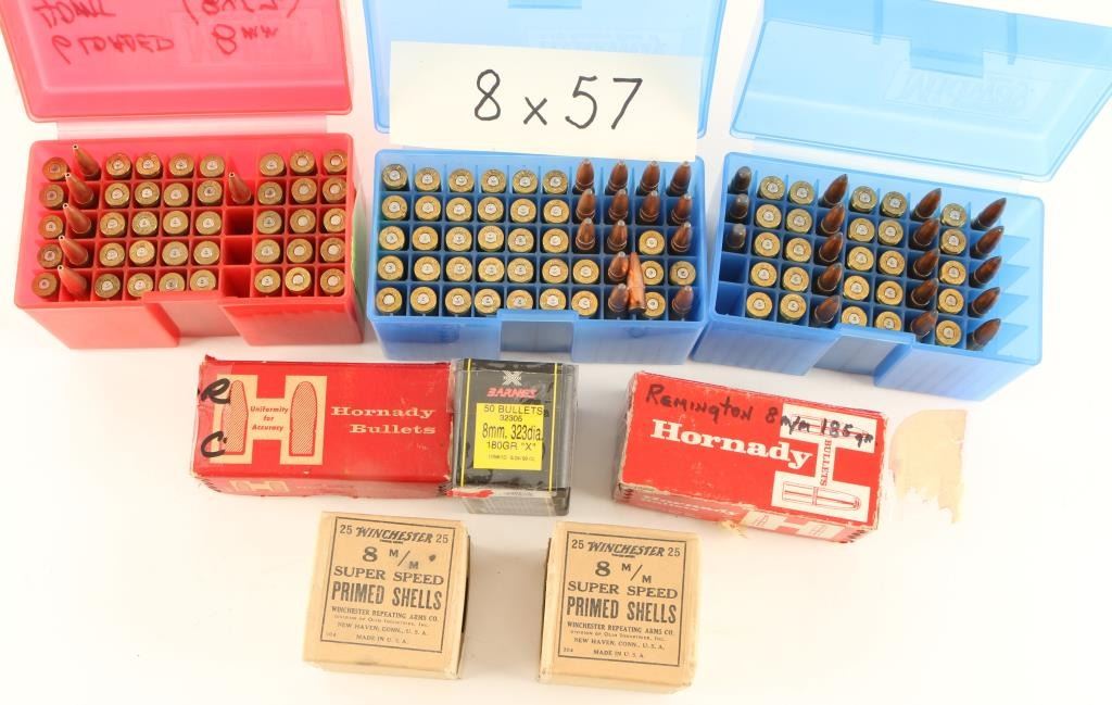 39 reloaded shells, 101 brass shells, 75 bullets, 2 original collector boxes of Win super speed primed shells