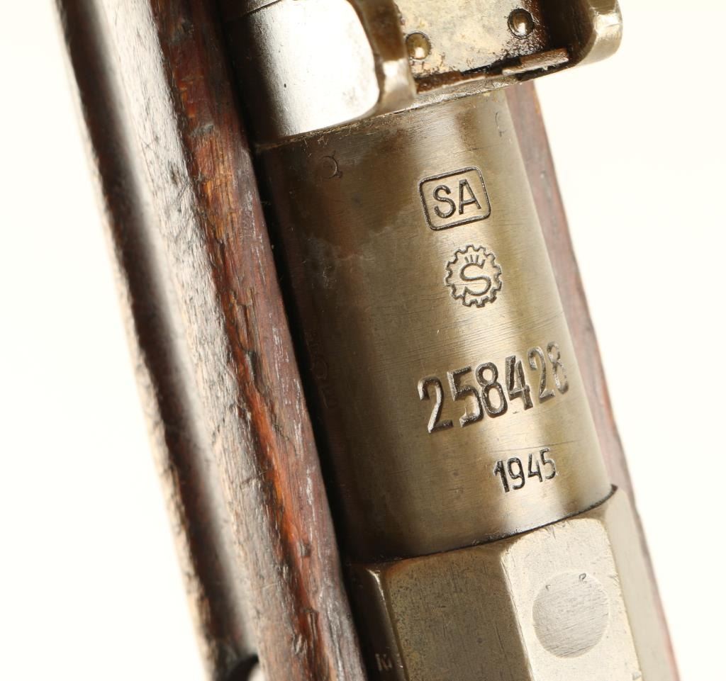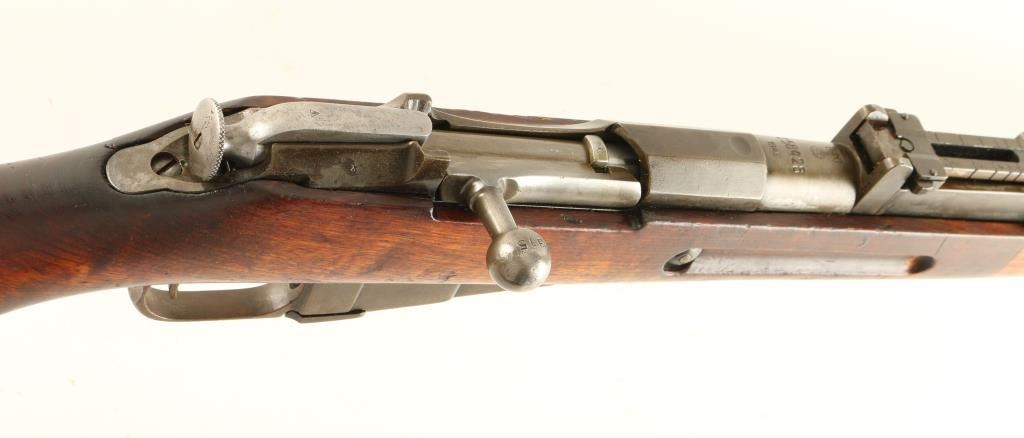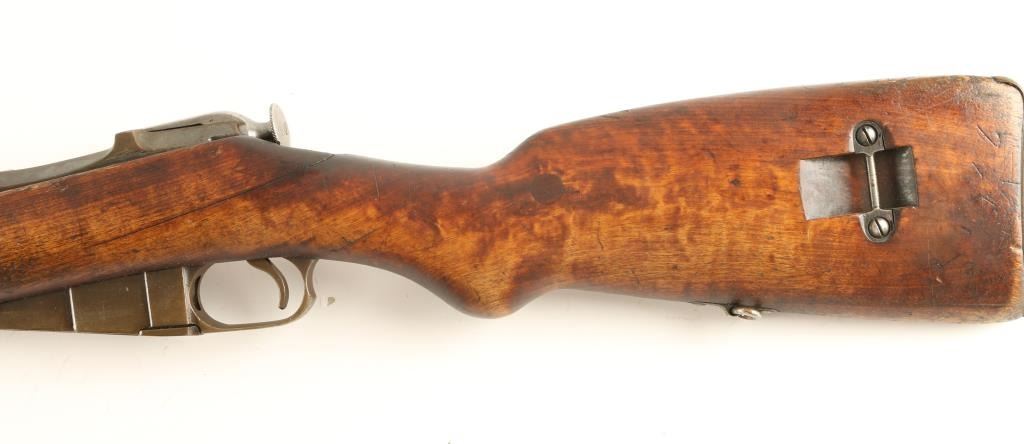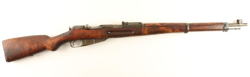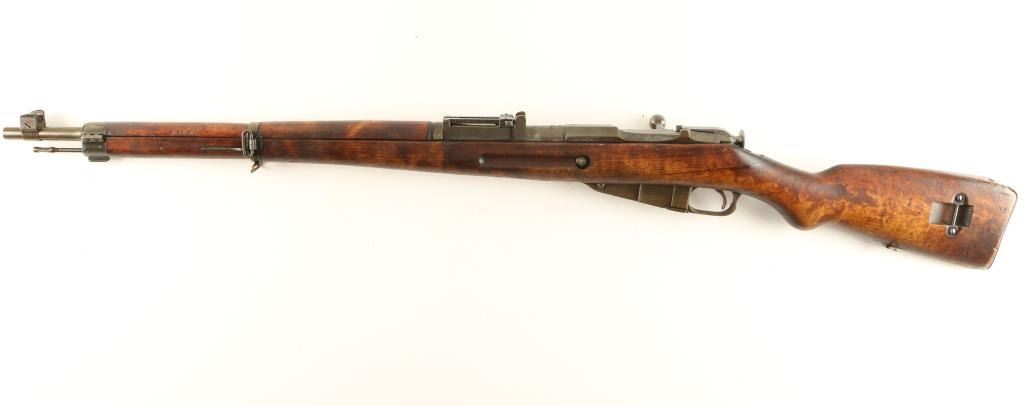 Finnish Military bolt action service rifle chambered in 7.62x54R, circa 1945. Features a blued finish, Sako marked 27" barrel, winged front sight, graduated rear sight to 1,000 meters, hinged front barrel band with bayonet lug, cleaning rod, sling swivels, octagonal receiver, straight bolt handle, internal box magazine, smooth wood handguard and finger-jointed semi pistol grip shoulder stock with metal buttplate. Serial numbers match on barrel and floorplate. Import marks on barrel. Rifle's finish has moved to a browning patina. Action is smooth, bore is semi-bright with good rifling, and wood stocks are good showing cracks & repairs. Condition is near good. ***C&R Firearm*** ***Modern Firearm***