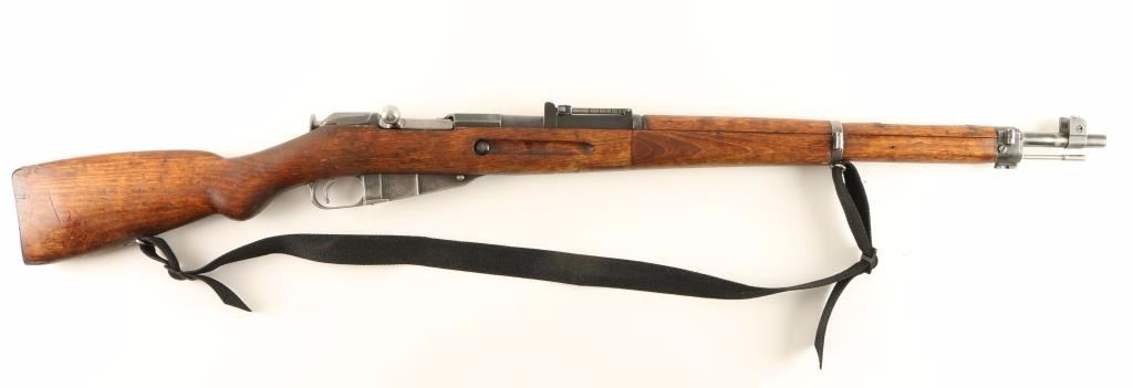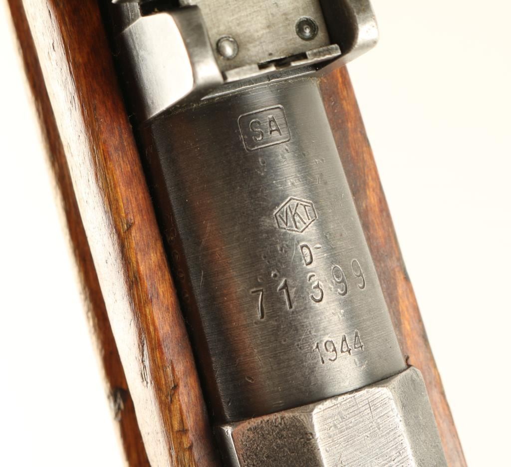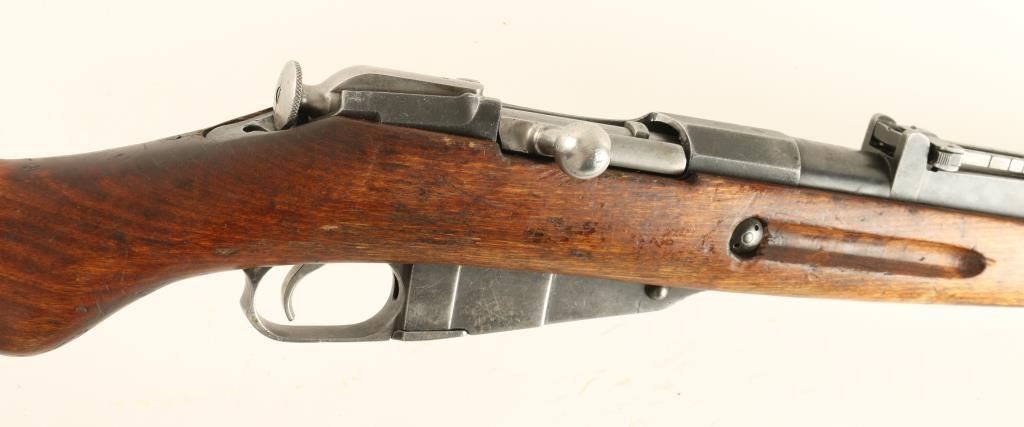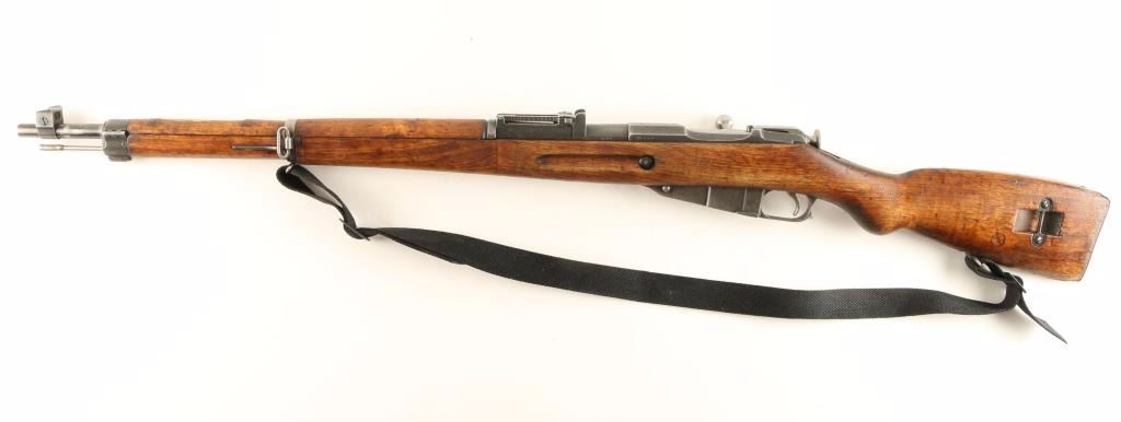 Finnish Military bolt action service rifle chambered in 7.62x54R, circa 1944. Features a blued finish, VKT marked 27" barrel, winged front sight, graduated rear sight to 1,000 meters, hinged front barrel band with bayonet lug, cleaning rod, black nylon sling, octagonal receiver, straight bolt handle, internal box magazine, smooth wood handguard and finger-jointed semi pistol grip shoulder stock with metal buttplate. Serial numbers match on barrel, receiver and bolt handle. Import marks on barrel. Rifle retains approximately 50% of it's dulling blue finish with old pitting on the receiver. Action is smooth, bore is very good+, and wood stocks show repairs. Condition is good. ***C&R Firearm*** ***Modern Firearm***