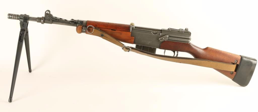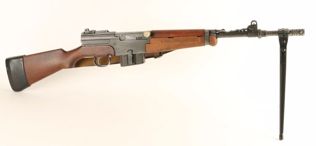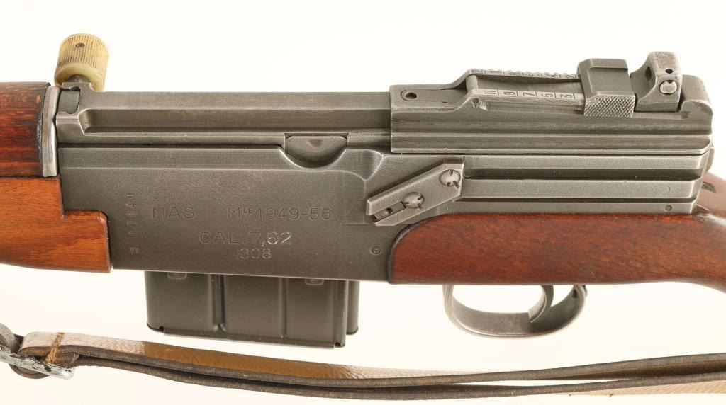 Converted French military semi-automatic rifle chambered in 7.62 Nato(stamped on receiver). Imported by C.A.I. of St. Albans, Vermont with import marks on receiver. Features a 20.7" barrel with grenade launcher, winged post front sight, graduated rear sight to 1,200 meters, grenade sights, 10 round magazine with .308 stamped on the bottom, brown leather sling, manual safety, added bipod, plastic charging handle cover, smooth wood handguard and pistol grip shoulder stock with MAS 1962 black rubber slip-on recoil pad. Includes an extra magazine with .308 stamp. The rifle shows an even grey finish throughout. Action is strong, bore is good are wood stocks are fine. Condition is very good+. ***C&R Firearm*** ***Modern Firearm***