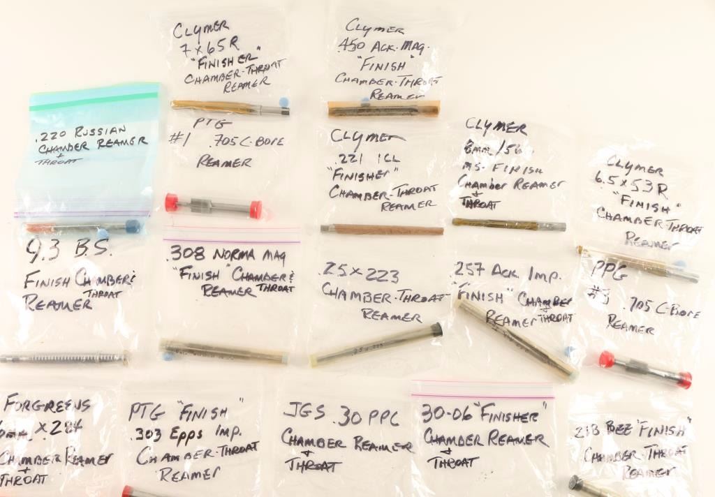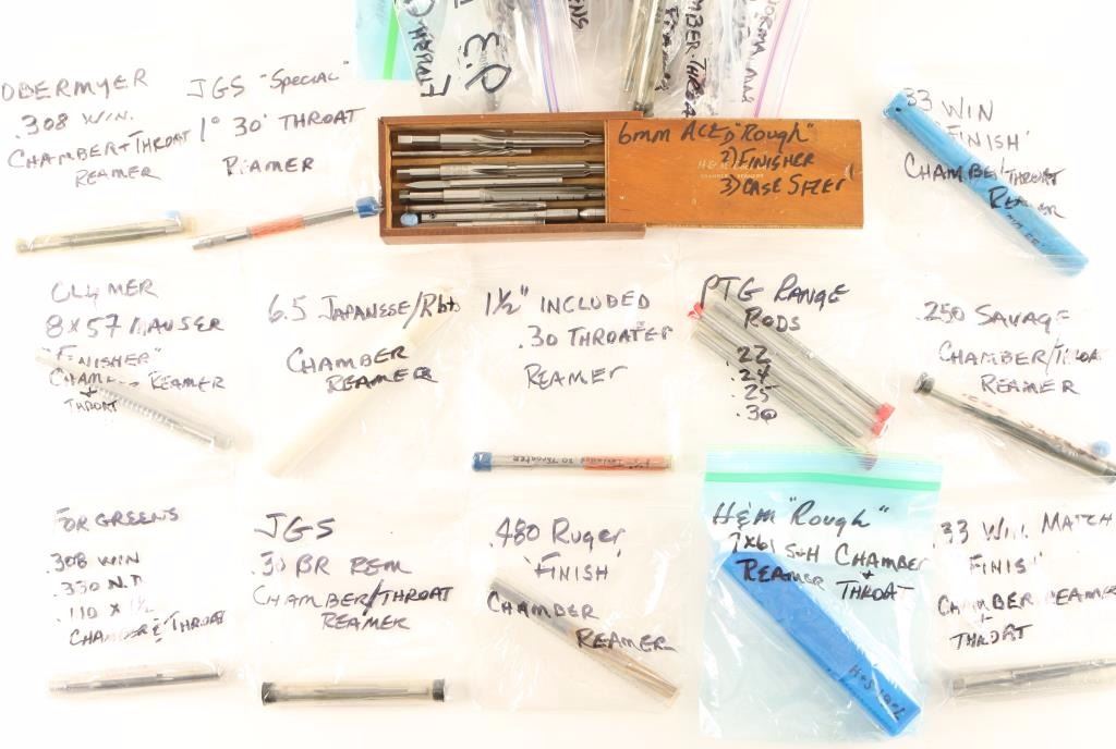 Large lot of reamers for various calibers. Also includes a 6mm finisher case sizer.