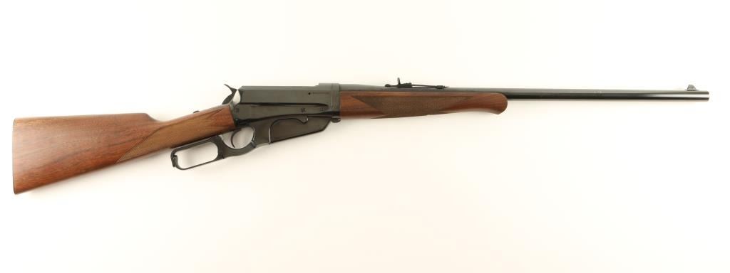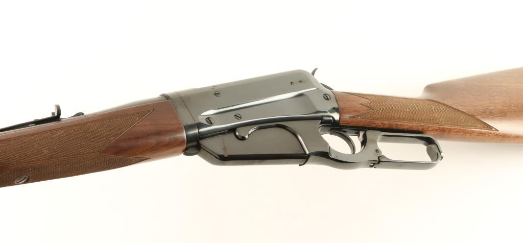 'Limited Series' Modern production take-down lever action sporting rifle chambered in .405 Winchester, manufactured in Japan by Miroku. Features a fully blued finish, 24" barrel, blade front sight with gold bead, adjustable buckhorn rear sight, drilled & tapped receiver, internal box magazine, checkered hammer spur, smooth trigger, sliding tang safety, checkered walnut schnabel forend and straight grip shoulder stock with smooth metal buttplate. Rifle retains approximately 94% of it's original finish showing little wear and light scattered surface rust. Action is smooth, bore is excellent and wood stocks are fine. Condition is very good+. ***Modern Firearm***