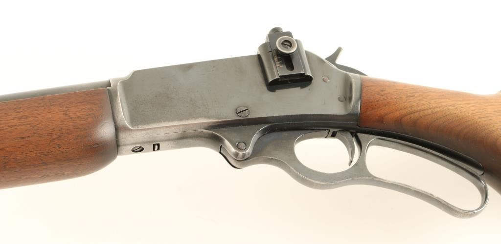 Vintage lever action repeating rifle chambered in .32 Special. Features a fully blued finish, 24" barrel, 2/3 tube magazine. globe front sight, no rear sight, side mounted Lyman 56 peep sight, smooth trigger, partially serrated hammer spur, smooth wood forend with metal cap and pistol grip shoulder stock with factory buttplate. Rifle shows moderate handling wear with muzzle wear and wear on the underside & top-rear portion of the barrel from carrying. Approximately 80% of the finish is retained overall. Action is smooth, bore is excellent and wood stocks are very good with minimal blemishes. Condition is very good. ***C&R Firearm*** ***Modern Firearm***