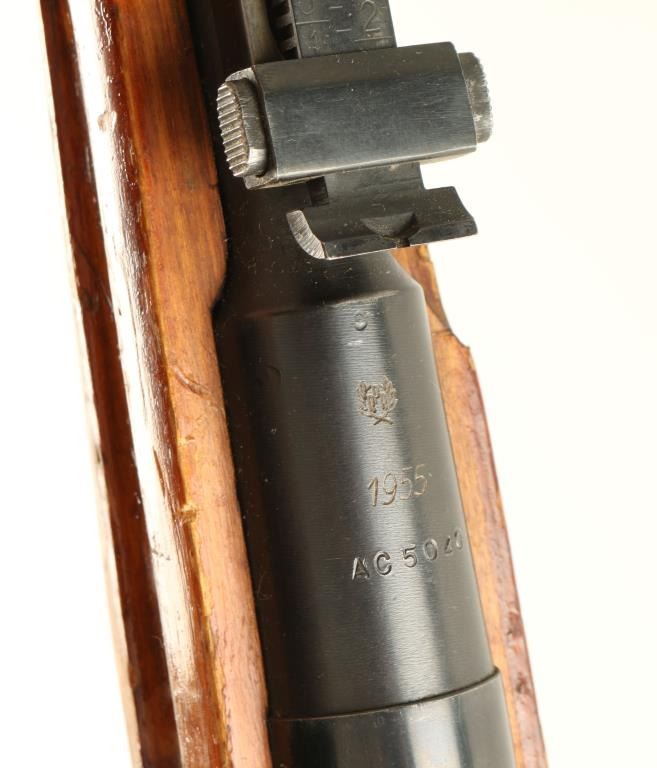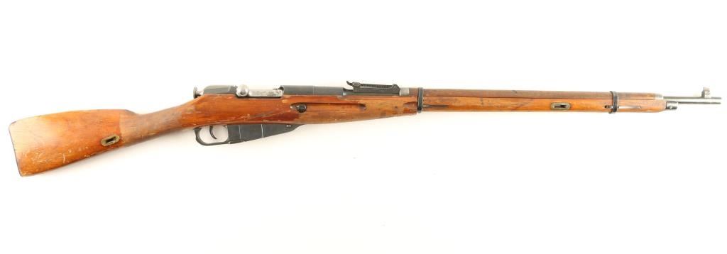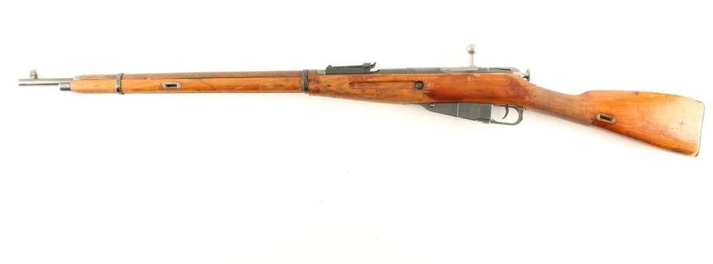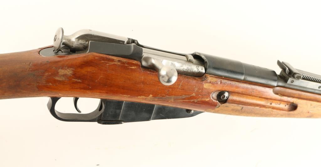 Post war production bolt action rifle chambered in 7.62x54Rmm, circa 1955. Featured a blued finish, 28.7" tapered barrel, blade front sight, graduated rear sight to 2,000 meters, internal box magazine, straight bolt handle, two barrel bands, smooth wood handguard and straight grip shoulder stock with metal buttplate. Matching serial numbers on barrel, floorplate, buttplate & bolt. Import marks on barrel. Rifle retains approximately 90% of it's fine blued finish with little wear. Action is smooth, bore is good and shoulder stock is near good. Condition is good. ***C&R Firearm*** ***Modern Firearm***