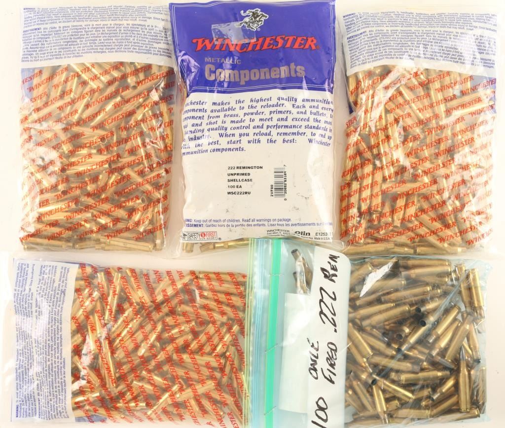 Including approx. 200 rds of new WIN .222 REM brass, 100 rds of once fired .222 REM, and 200 rds of new .223 REM brass.